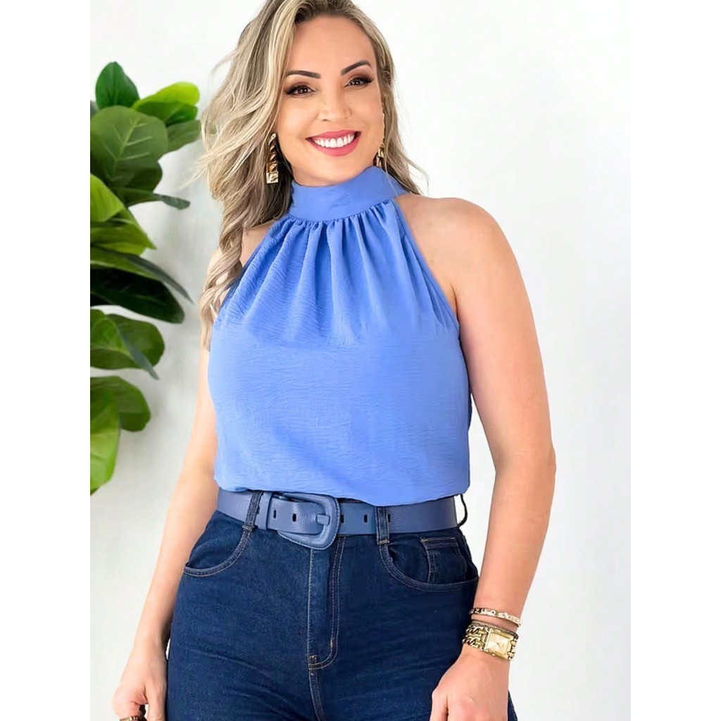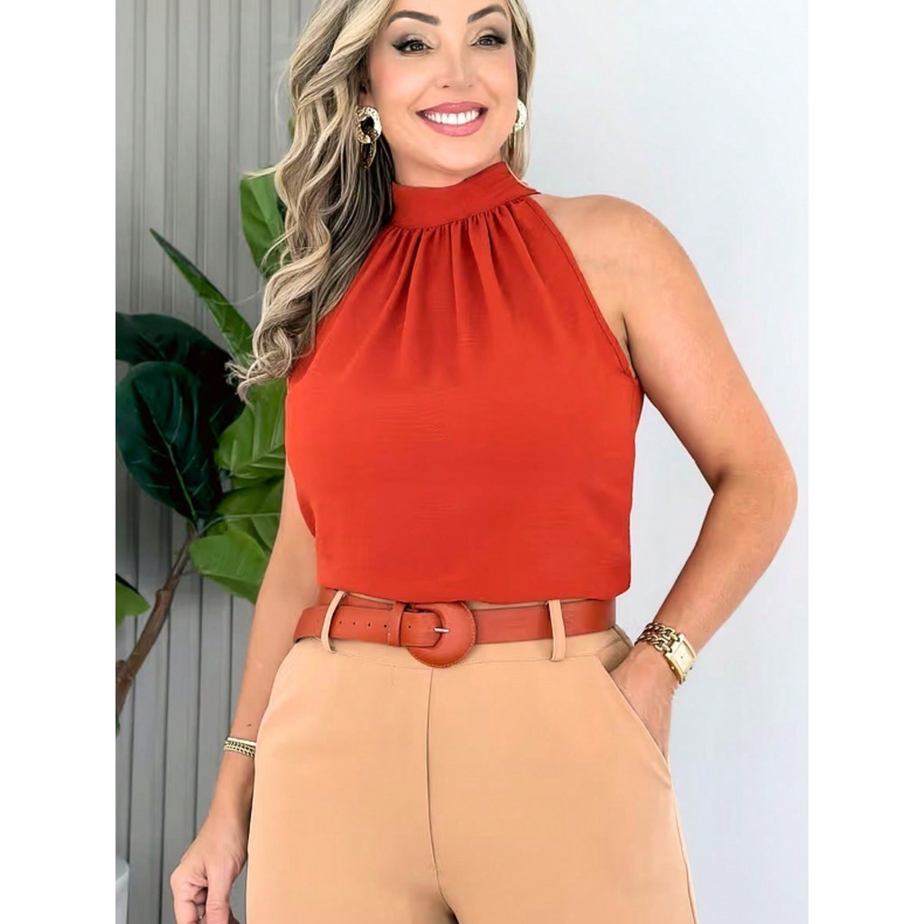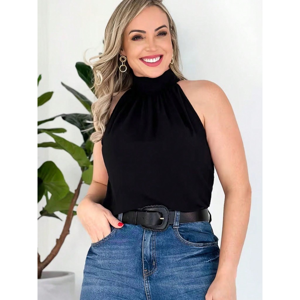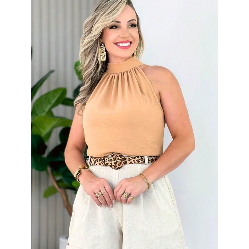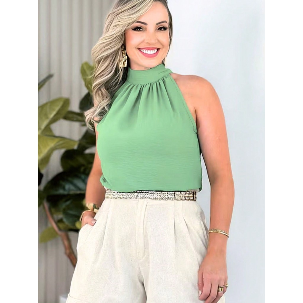 Blusa Regata Feminina Gola Alta Franzido Tecido Duna pra verao moda 2024