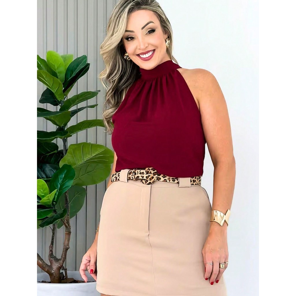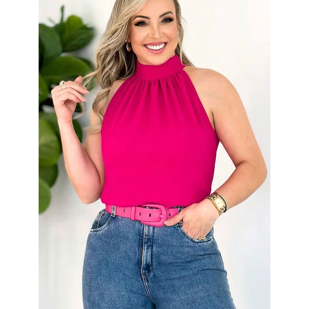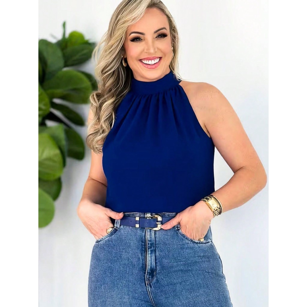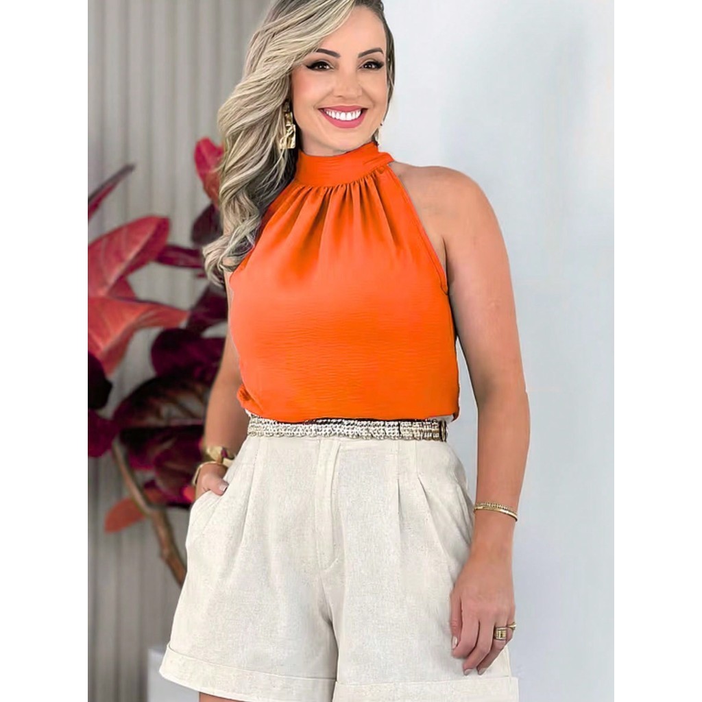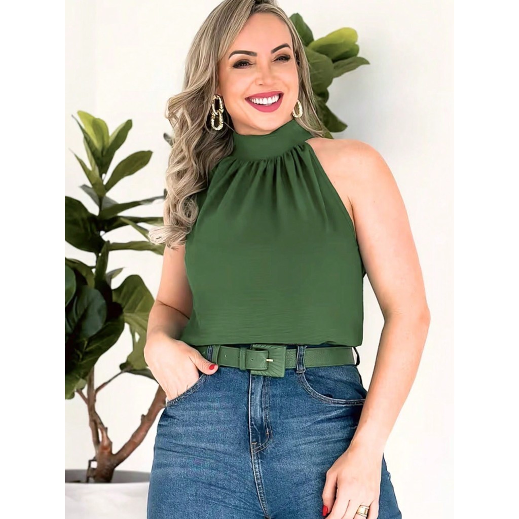 Blusa Regata Feminina Gola Alta Franzido Tecido Duna pra verao moda 2024