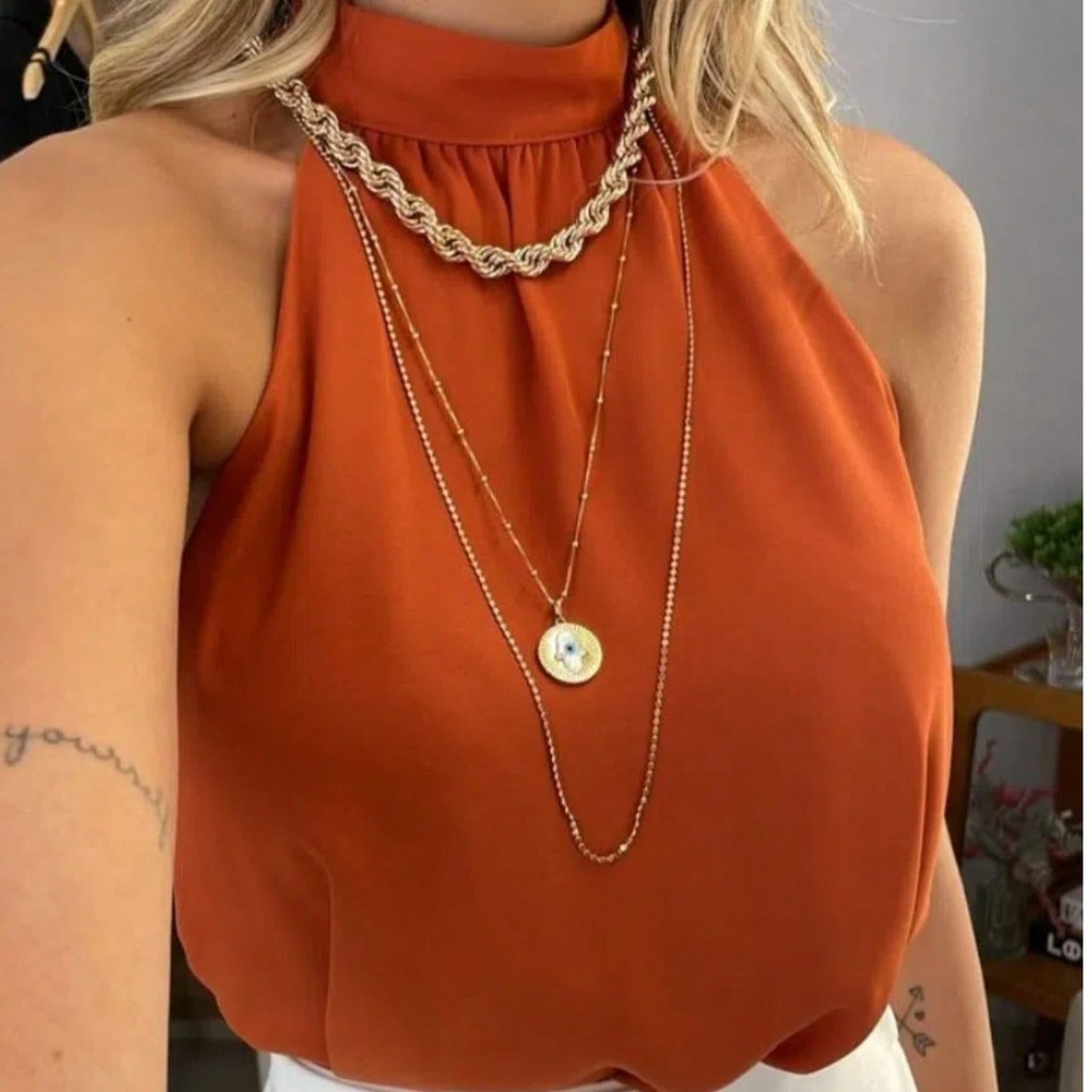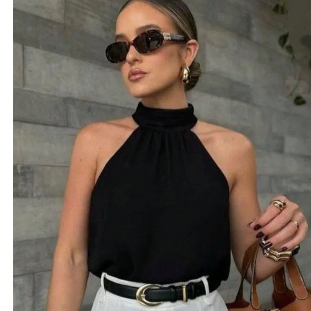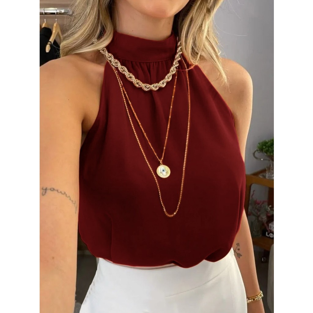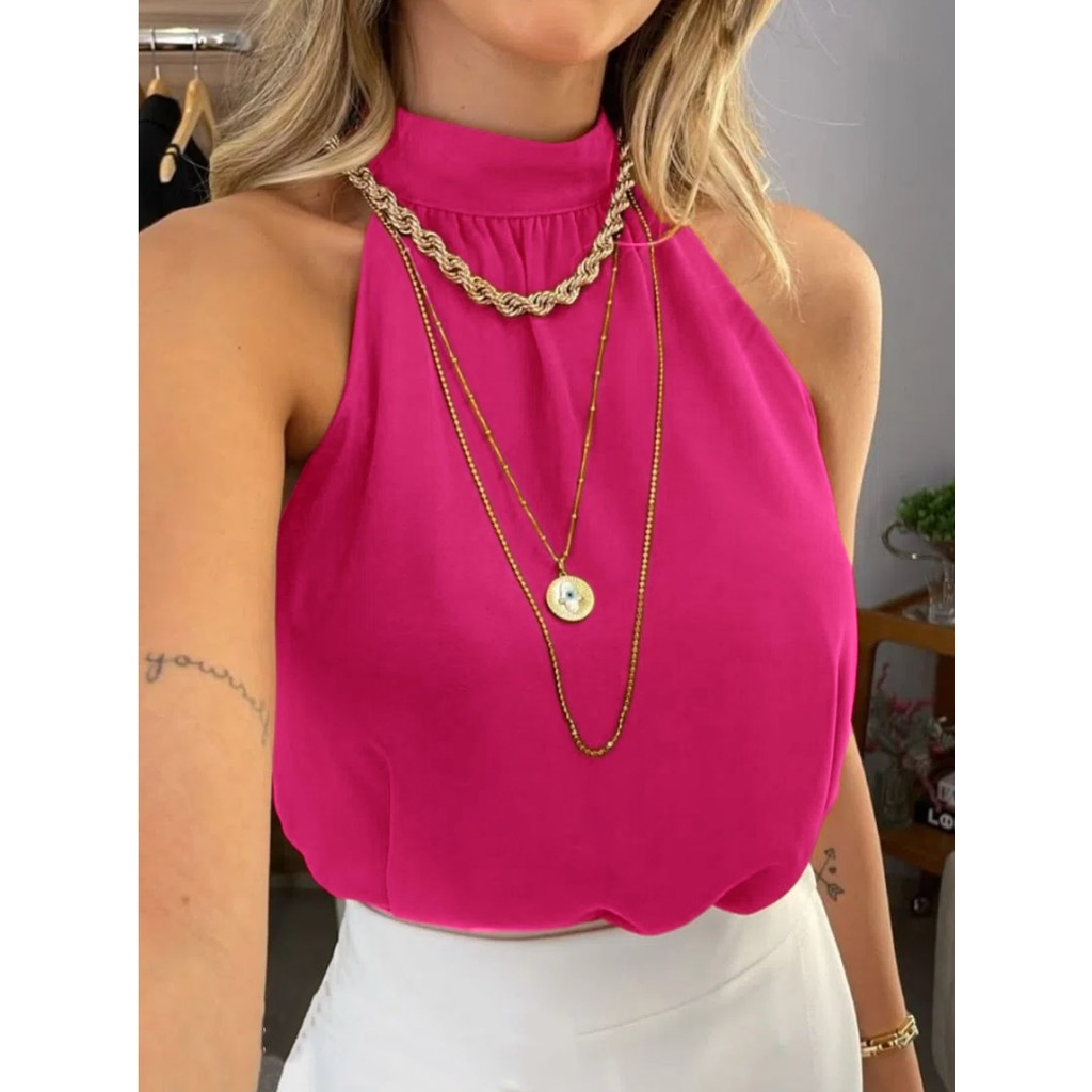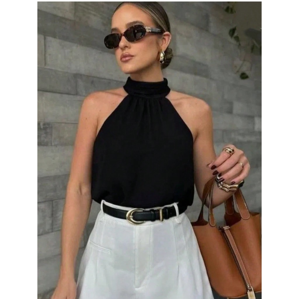 Regata de duna feminina gola alta de franzido simples pra verao