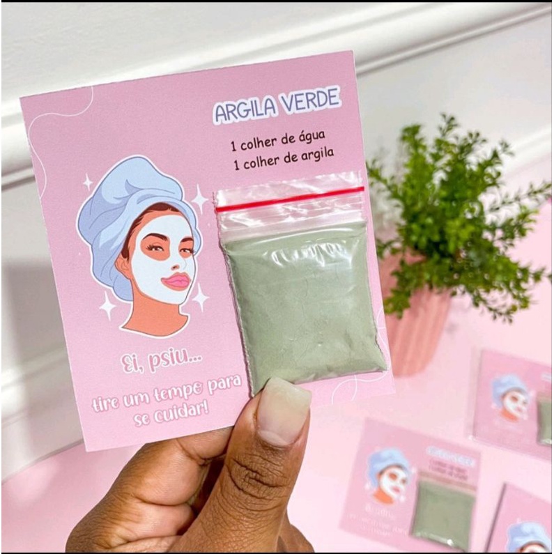 Mimo para sua cliente sachês de argila com cartao. verde rosa 20/40/100