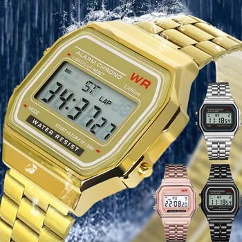 Relógio Digital Led Masculino Feminino A Prova D'Água Retro Preto Prata Rose Dourado Clássico