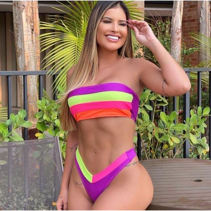 Biquini Tomara Que Caia Top 4 Cores Com Bojo Colorido Verão Moda Praia