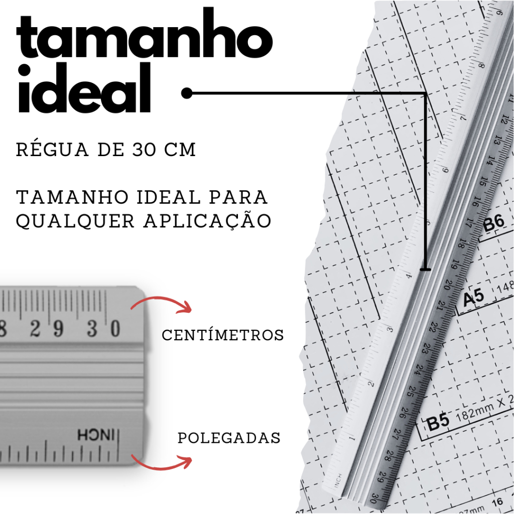 Regua de alumínio 30 cm papelaria escolar escritório régua
