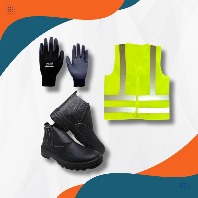 Kit Epi Entregador Mercado Motorista Bota Botina Bico Pvc + Colete Refletivo + Luva Multitato