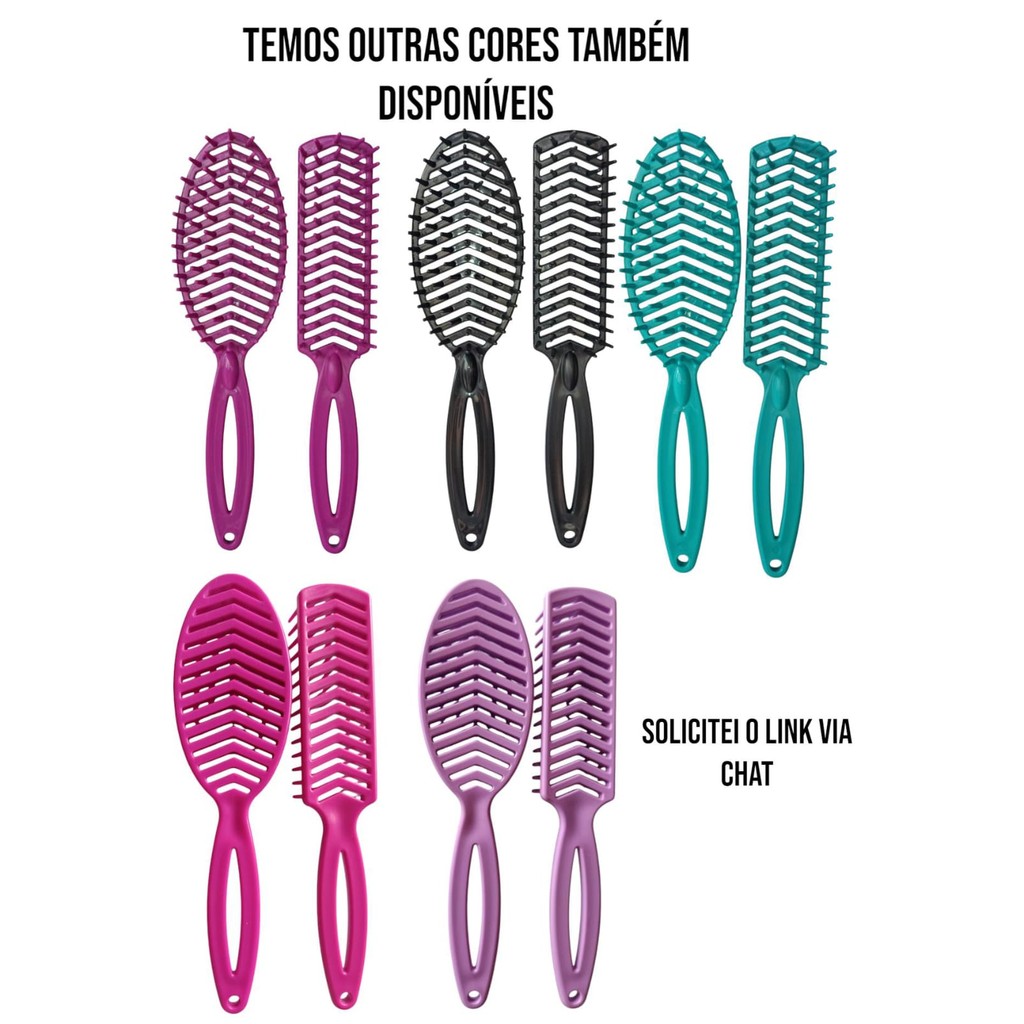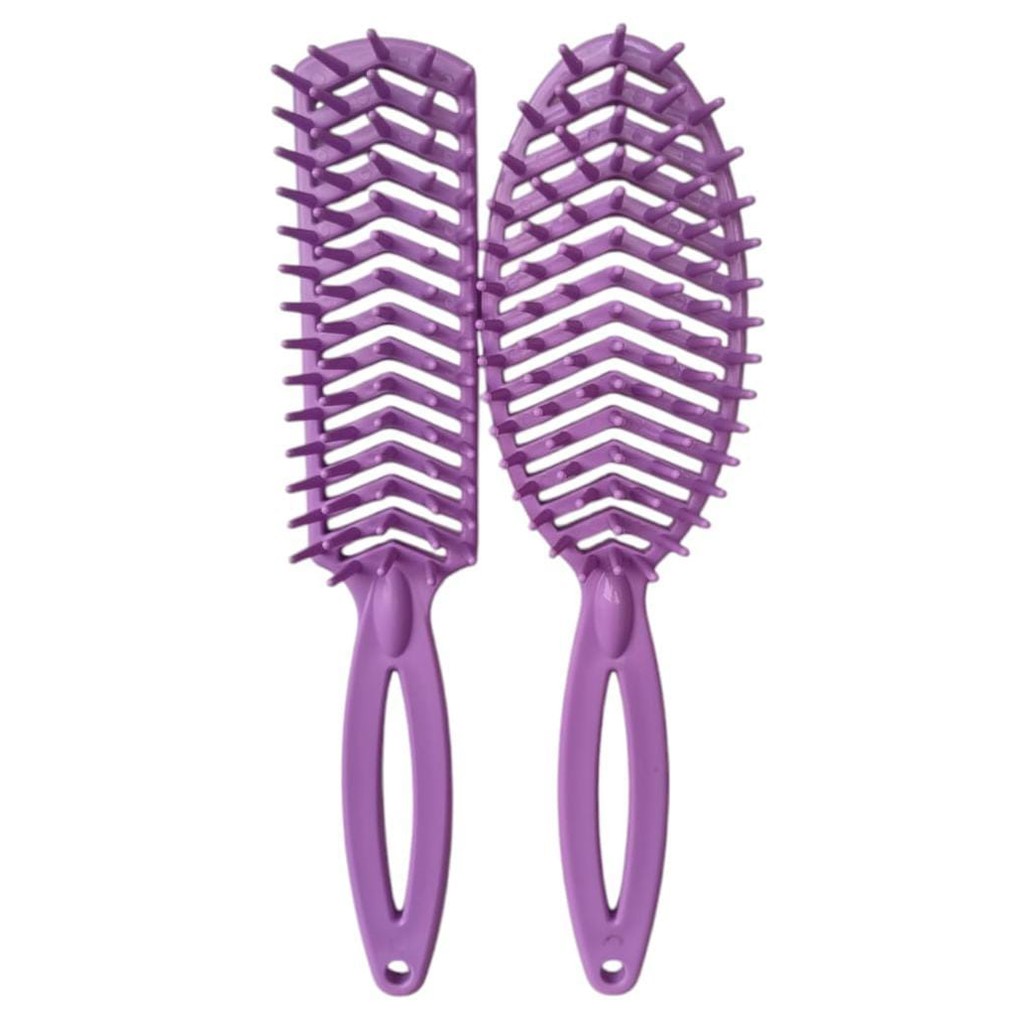 Kit 2 Escovas Rigida Grande Plastica Cabelo 1 Reta E 1 Oval Lilás
