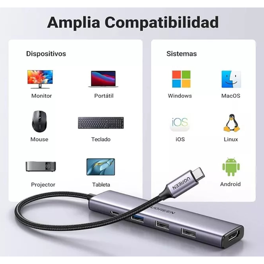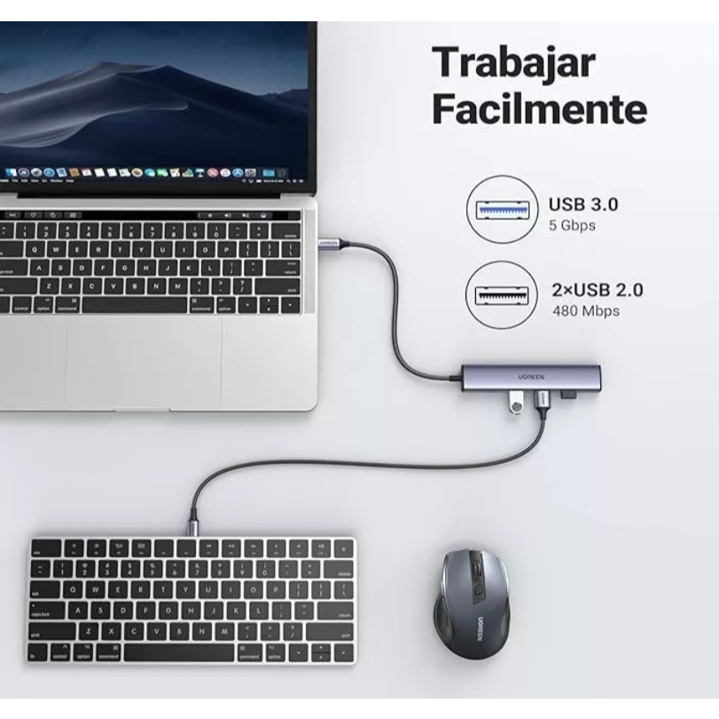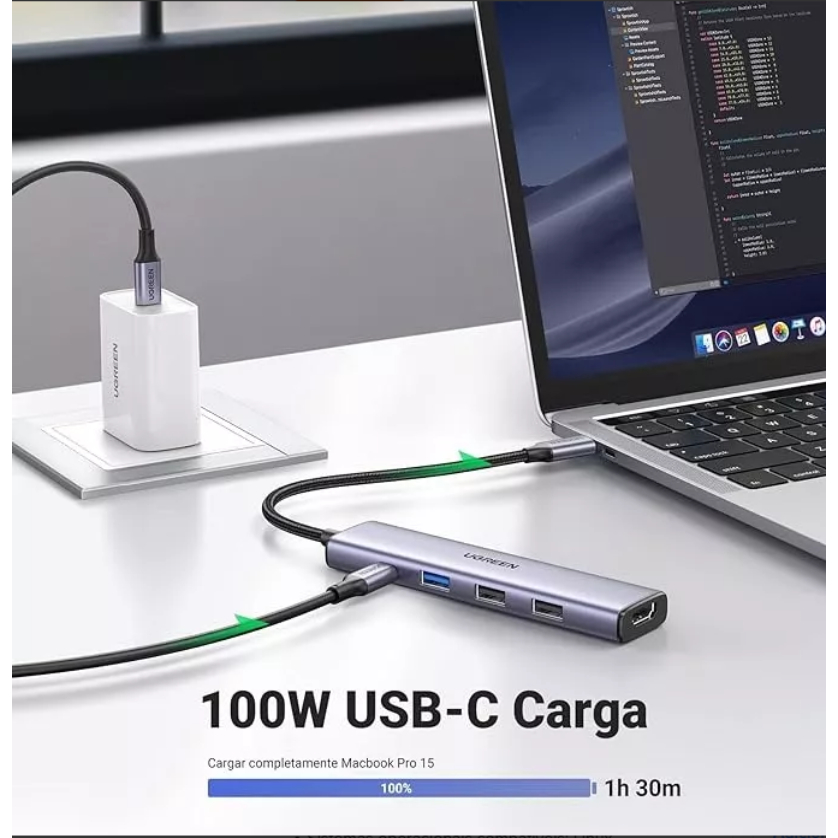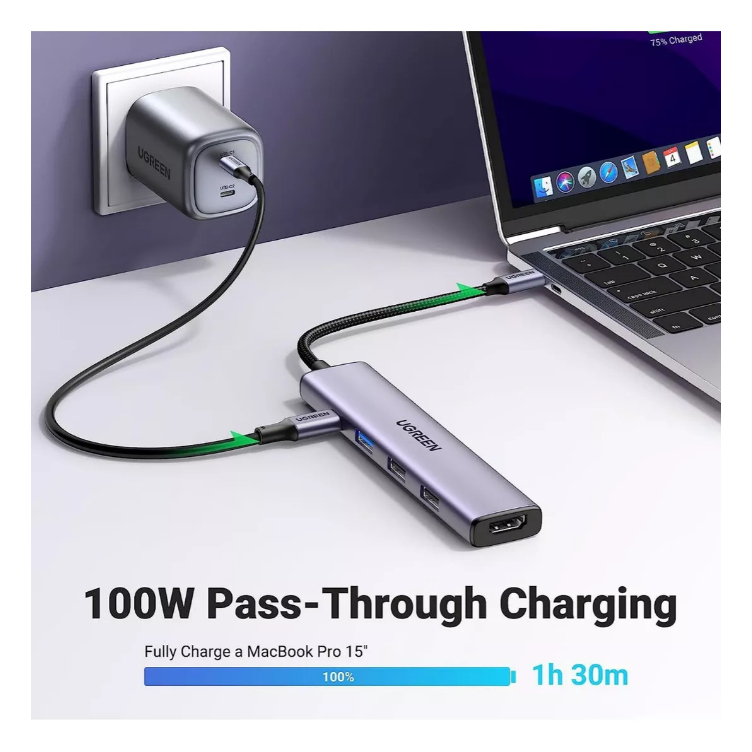 Hub 5 Em 1 Ugreen Usb-c Para 3* Usb + Hdmi 4k + Tipo-c 100w OPEN BOX.