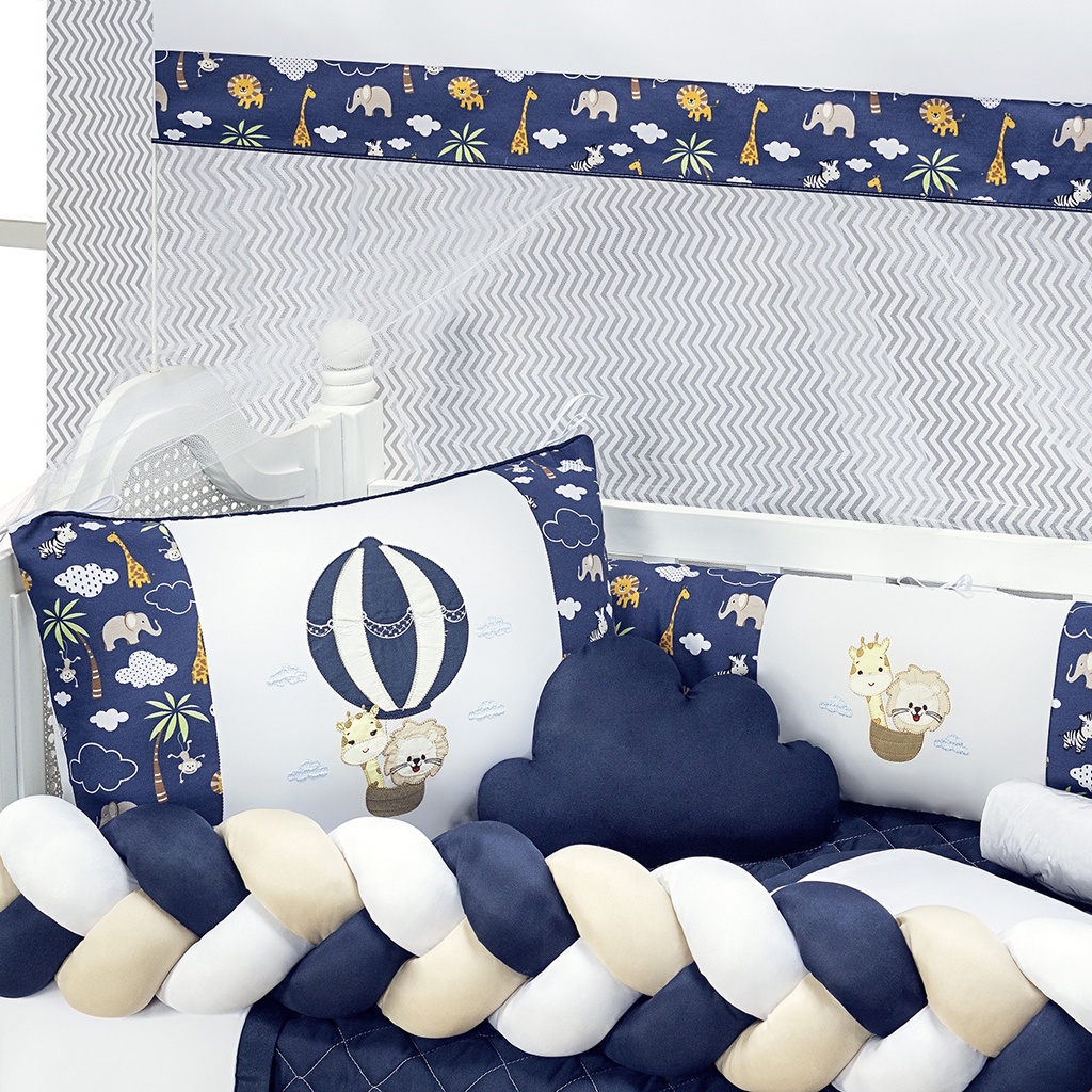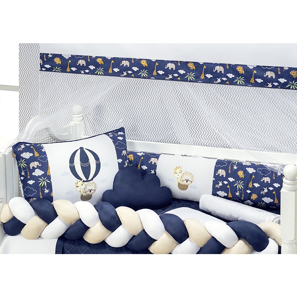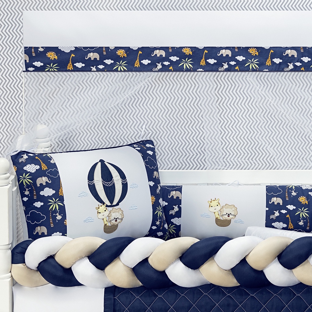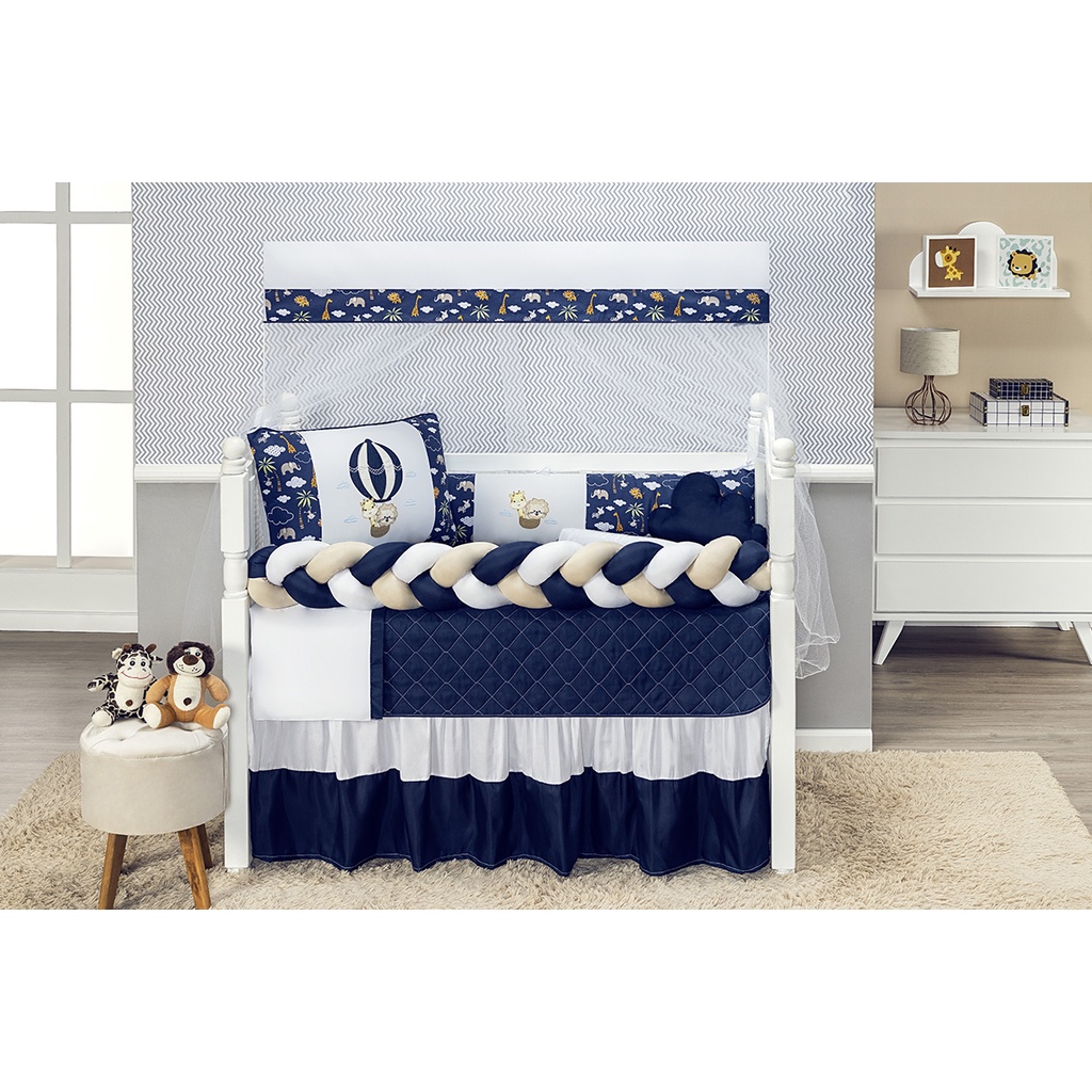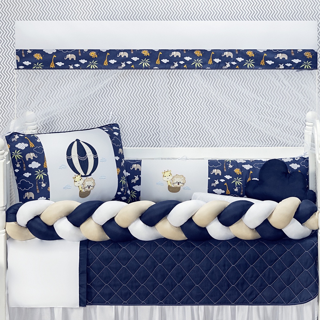 Kit Berço Girafa Leão Americano Completo Safari Azul Marinho 11 Peças