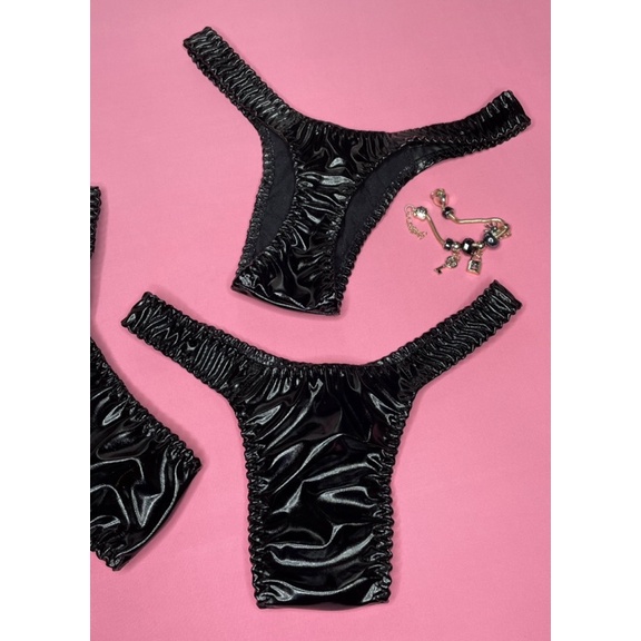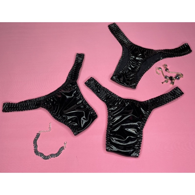 Calcinha de Aquendar fazer o tucking Vinil Preto Alças Largas