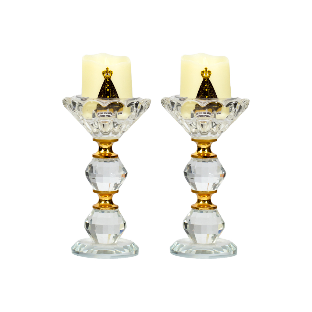 Kit 2 Castiçais de cristal luxo, acompanha vela de led.