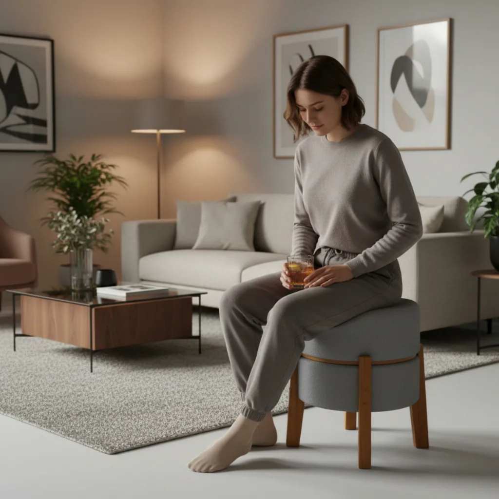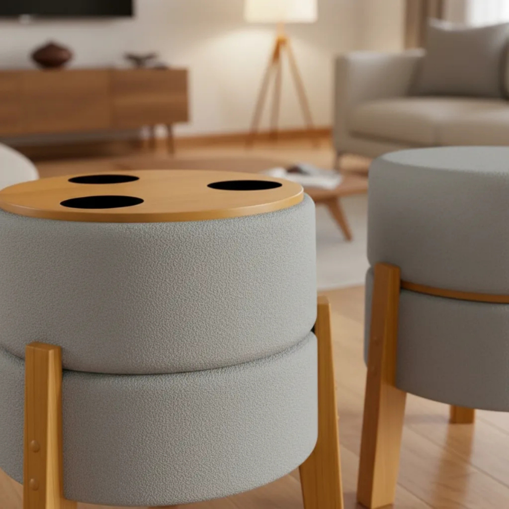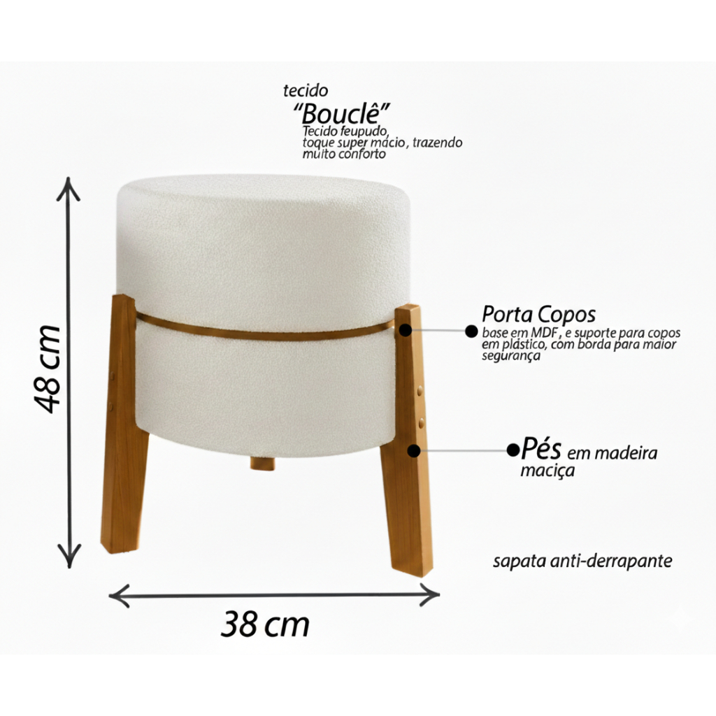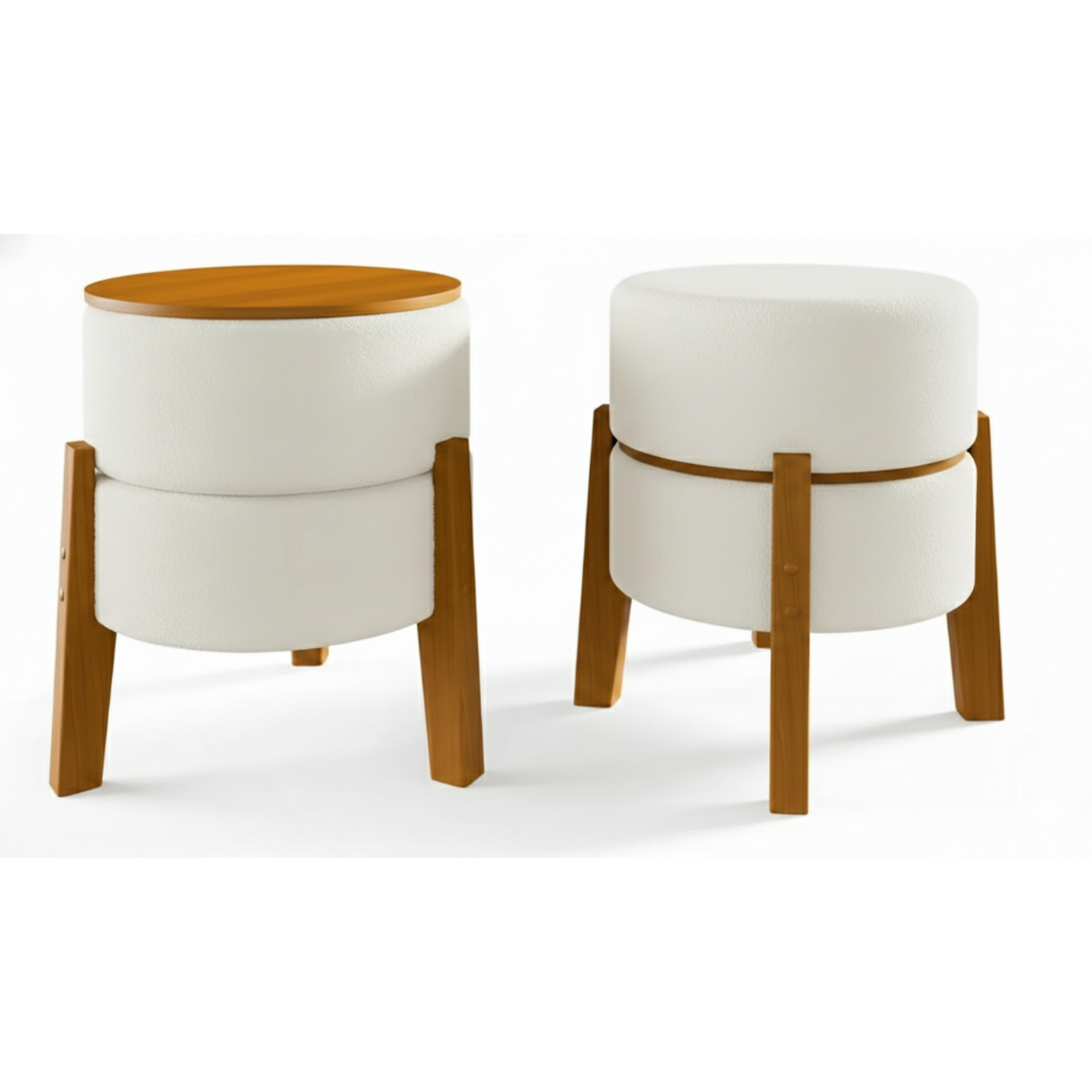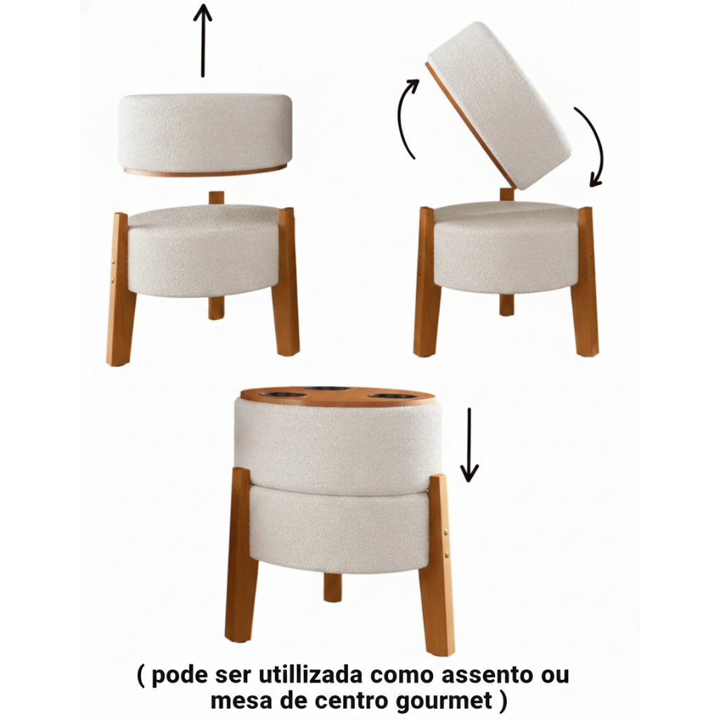 Puff Com Mesa De Apoio Para Drinks Gourmet com Porta Copos