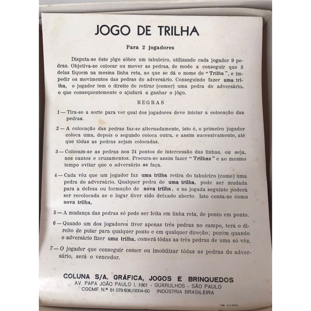 Jogo antigo trilha Columbia Brinquedos