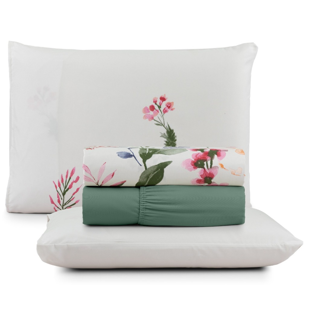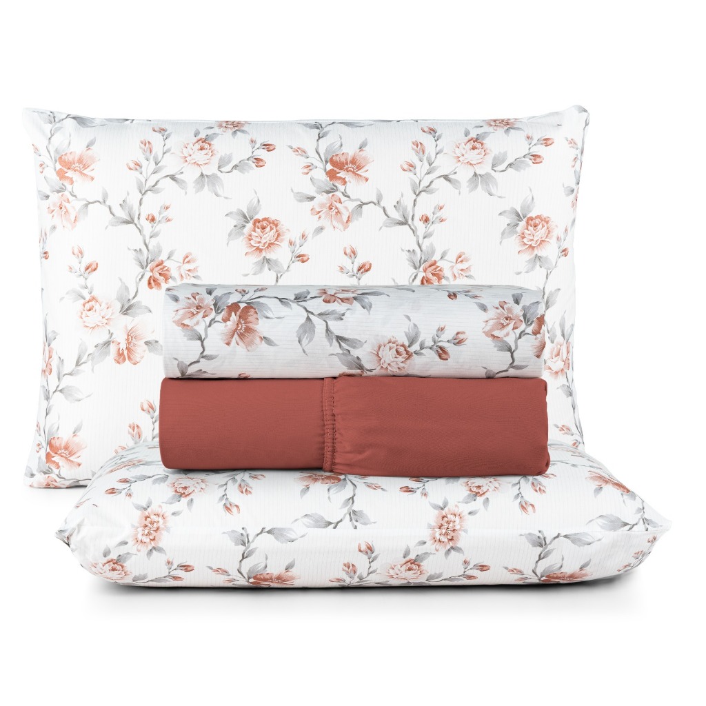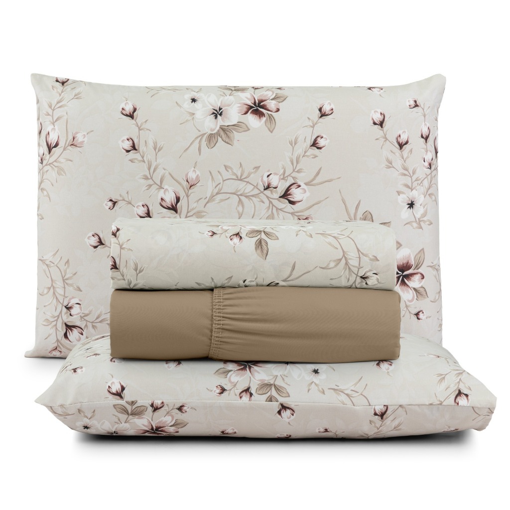 Jogo De Cama Lençol Casal Padrão Box 04 Peças Micropercal 200 Fios
