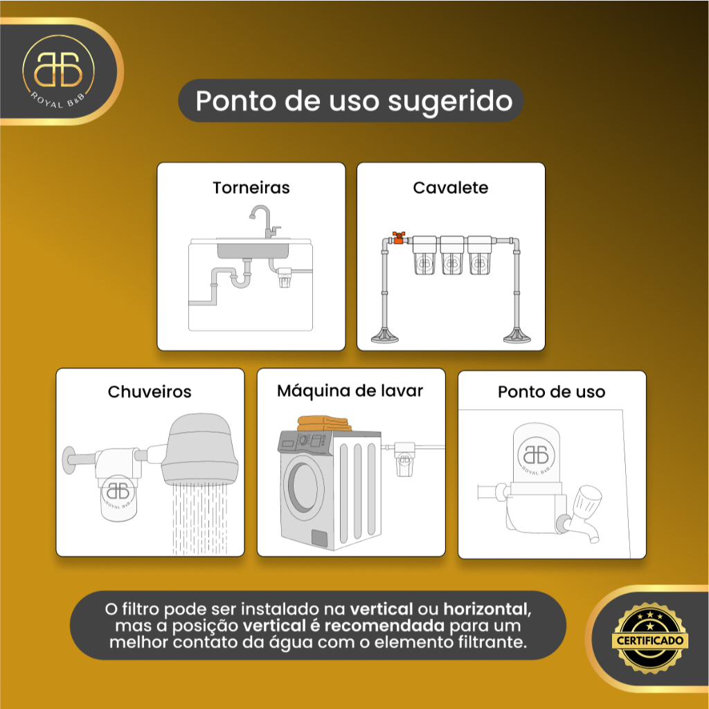 Filtro De Água Branco Bebedouro Chuveiro Pou 125 Carbon Block Carvão Ativado Completo
