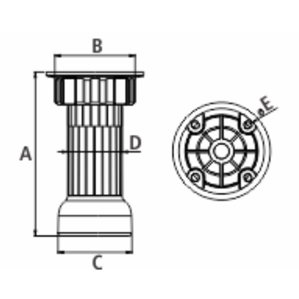 Kit 5 Pé Ajustável Com Variação Altura Para Móveis Armário Regulável Redondo 26,4cm A 30cm Suporta Até 80kg