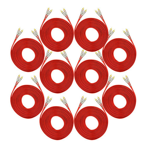 KIT 10 CABO RCA BLINDADO VERMELHO 5M E-TECH PARA SOM AUTOMOTIVO