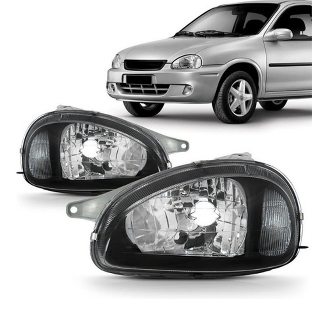 PAR FAROL CORSA 2001 CARCACA CINZA MOLDURA PRETA LADO DIREITO E ESQUERDO