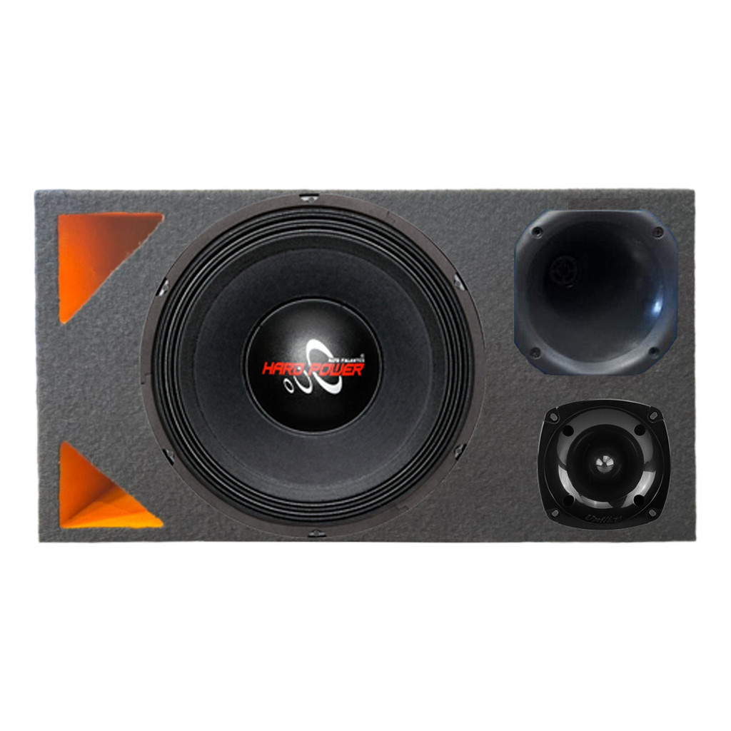 CAIXA TRIO DUTO TRIÂNGULO COLORIDO ALTO FALANTE HARD POWER HP 750 UNLIKE 400