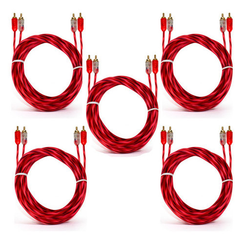 KIT 5 CABO RCA CRISTAL MATTE 1M E-TECH INJETADO PARA SOM AUTOMOTIVO