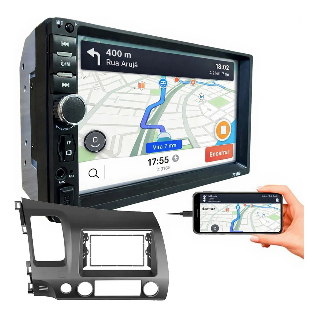 KIT CENTRAL MULTIMIDIA MP5 7 POL COM MOLDURA HONDA CIVIC 2007 A 2011