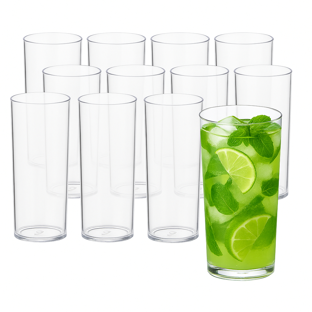 Kit 12 Copo Long Drink Acrílico Resistente Para Balada Festa 350ml