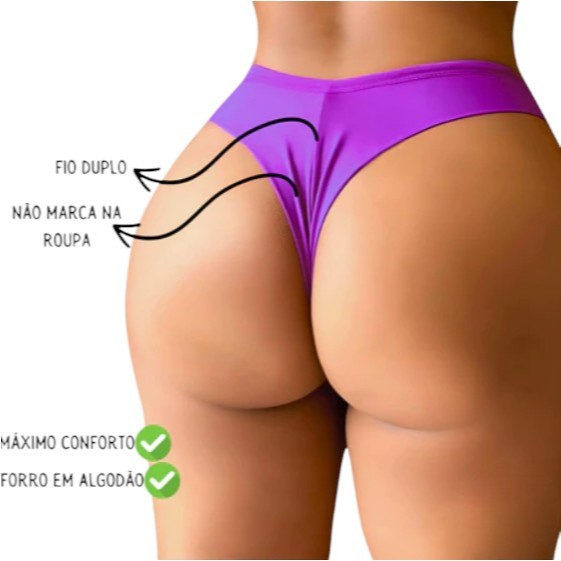 Kit 3 Calcinha Fio Dental Duplo Sem Costura Empina Bumbum Não Marca