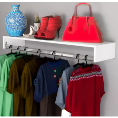 Cabideiro de Parede Closet Arara de Roupas Quarto Branco 60 CM