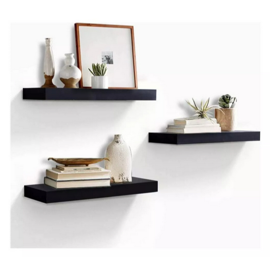 Kit 3 Prateleiras reta 20/30/40 nicho Preto suporte decoração sala quarto banheiro escritório