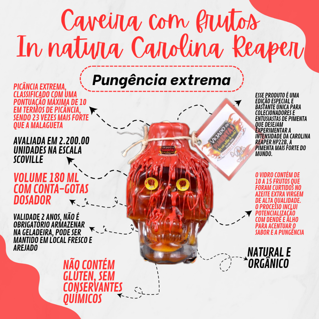 Carolina Reaper Frutos Inteiros In Natura Curtida No Azeite Caveira 200 ML