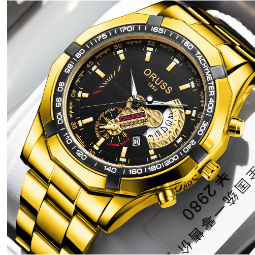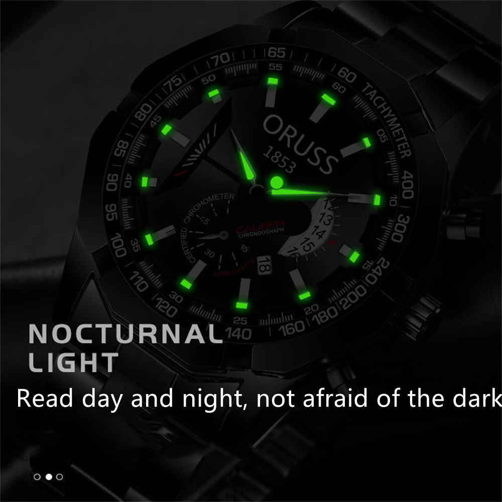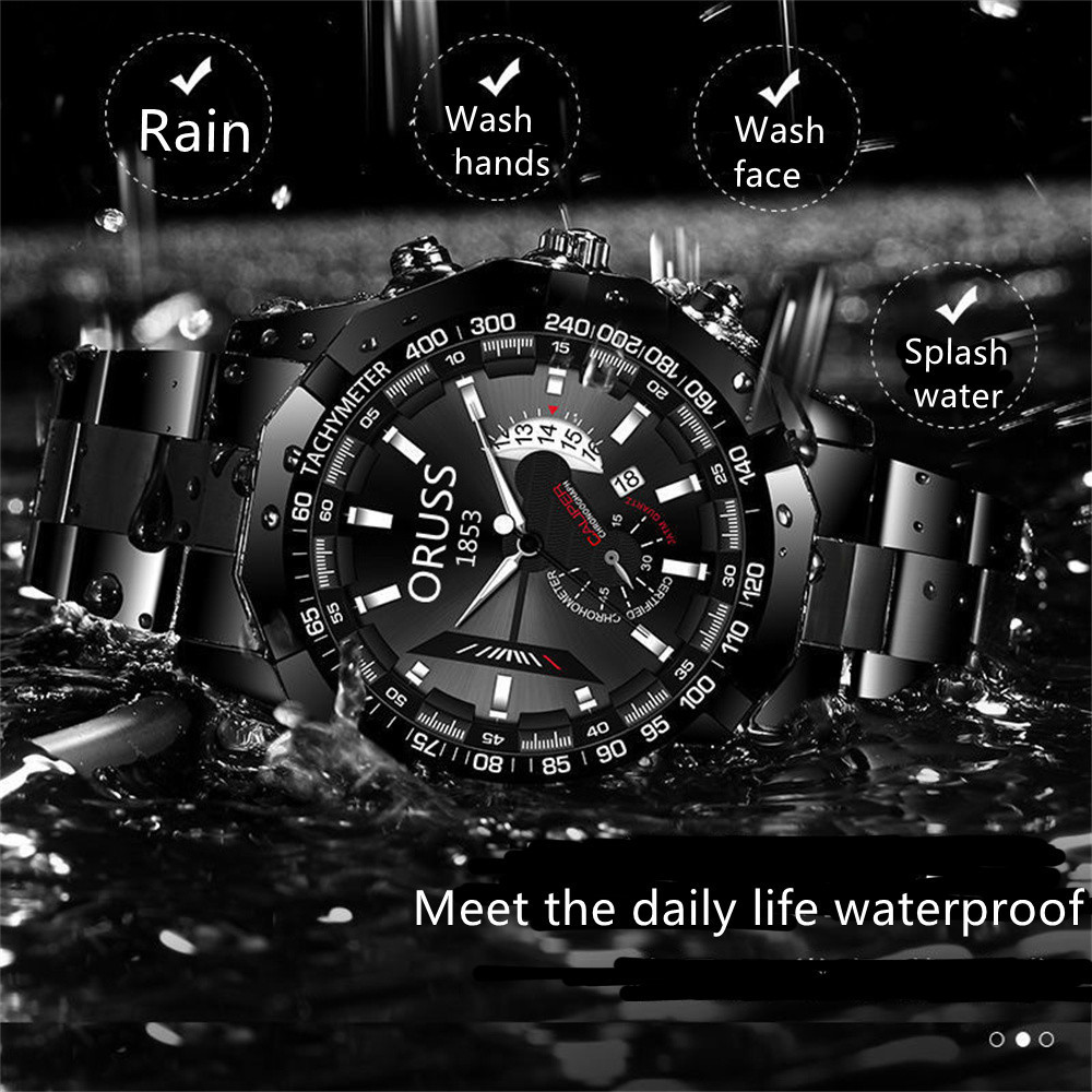 ORUSS Relógio Masculino de Aço Inoxidável à Prova D'água Negócios de Moda BQ