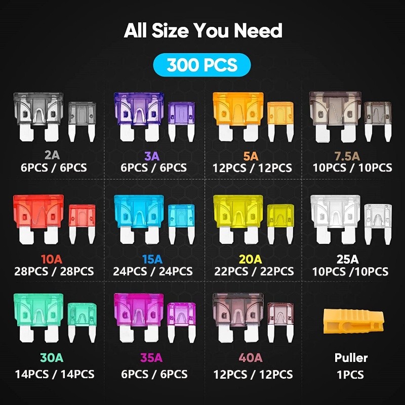 300 Pcs Conjunto Sortido Perfil De Tamanho Médio Lâmina Fusível Carro Auto Caminhão 2-40A Com Caixa Clipe