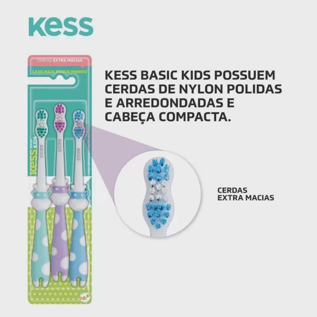 Pack Escovas de Dente Infantil Basic Pets com 3 Escovas Médias Kess 2566