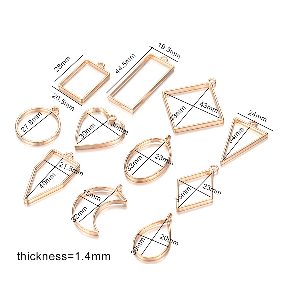 Metal Quadro Oco , Molde Moldura UV Epóxi Moldado , DIY Fazer Jóias Pingente (11 Pcs/Embalagem)
