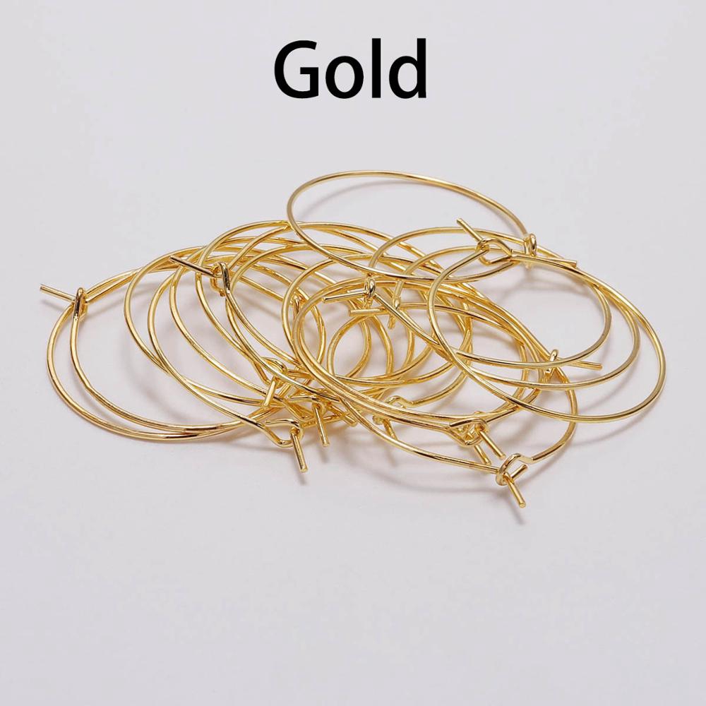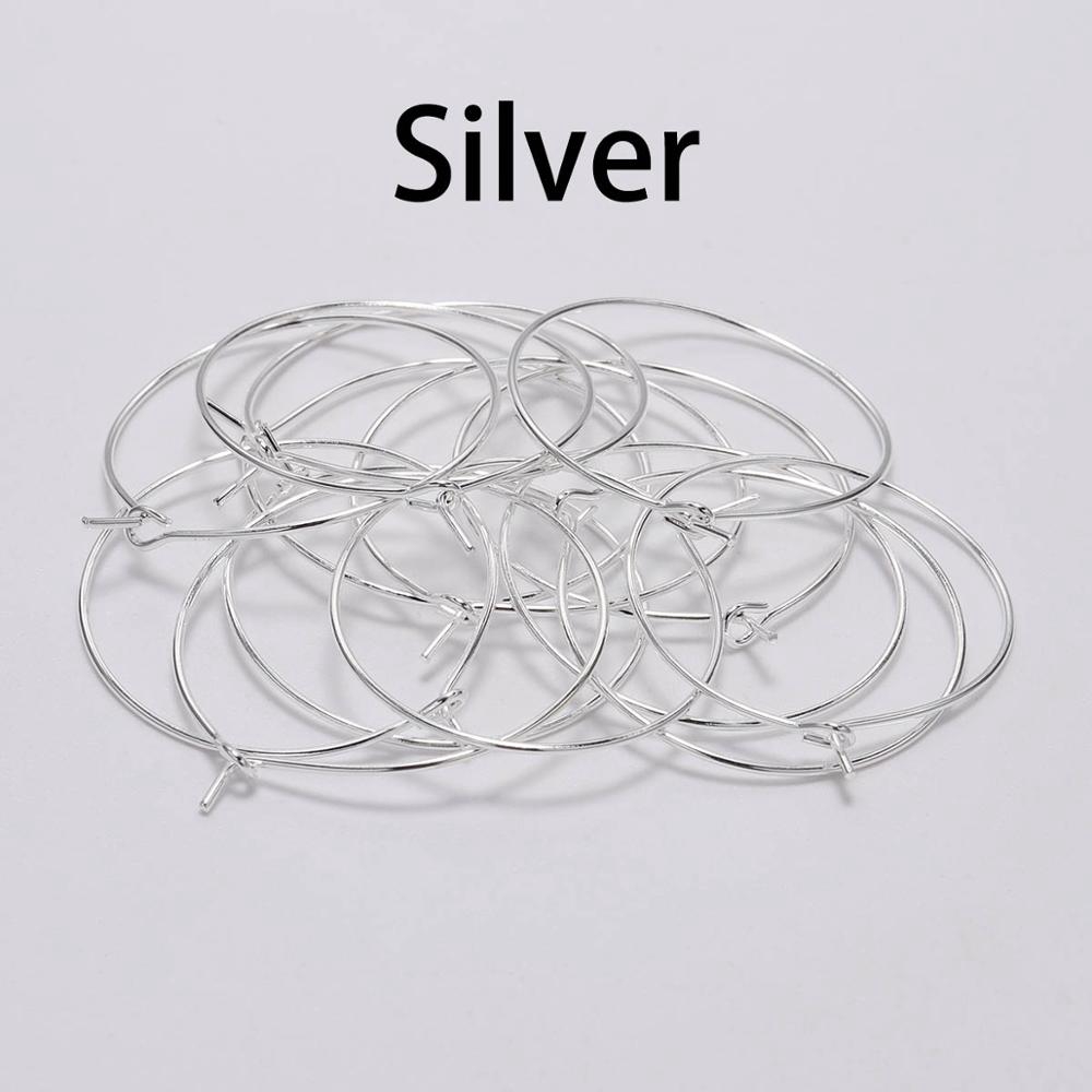 50 Pçs/Lote 20 25 30 35mm Argolas De Ouro De Prata KC Brincos Grande Círculo Aros De Fio De Fios Para DIY Fazer Jóias Suprimentos
