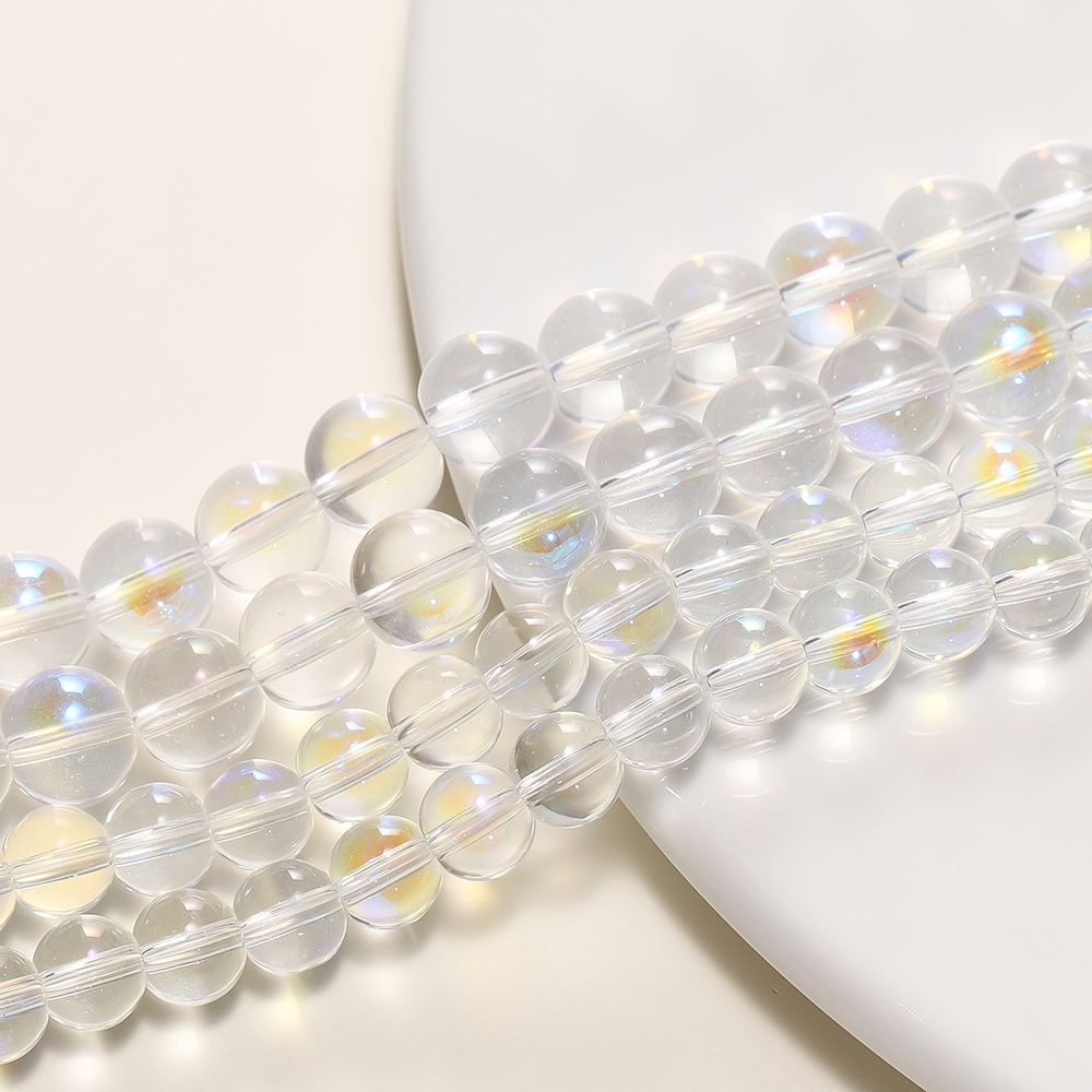 St. kunkka 8-10mm Contas de Vidro Transparentes Redondas de Vidro Fosco Branco Luz da Lua para Pulseira de Bijuteria Colar Jóias