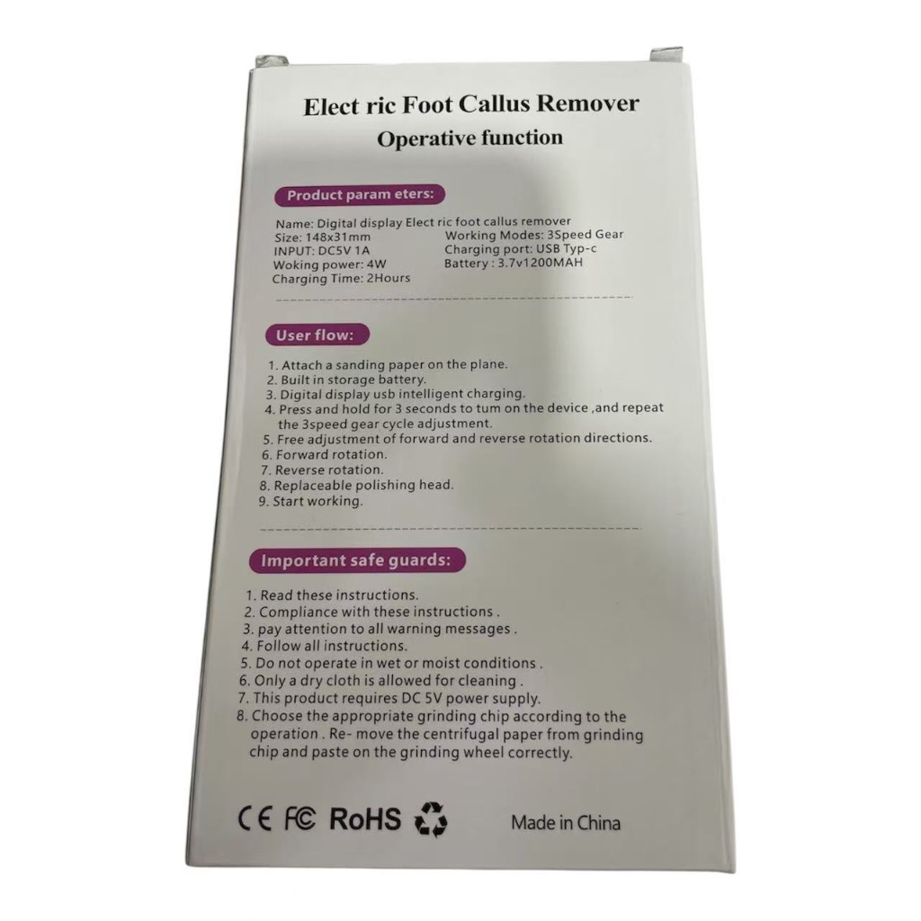 Removedor elétrico de calos nos pés 2 em 1 recarregável