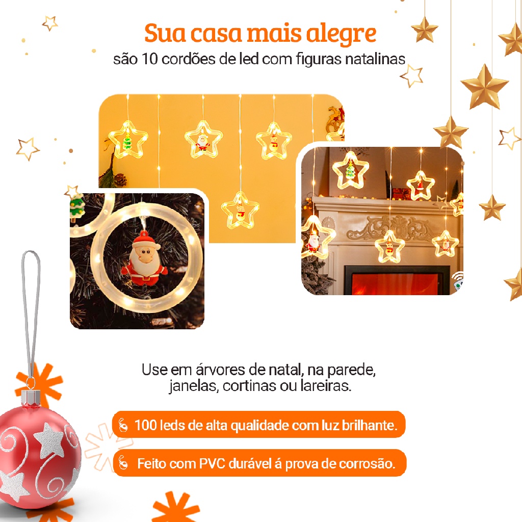 Cascata Cortina Pisca Pisca Estrela 100 Leds 3m Bivolt Fio Fada Decoração de Enfeite Árvore Natal