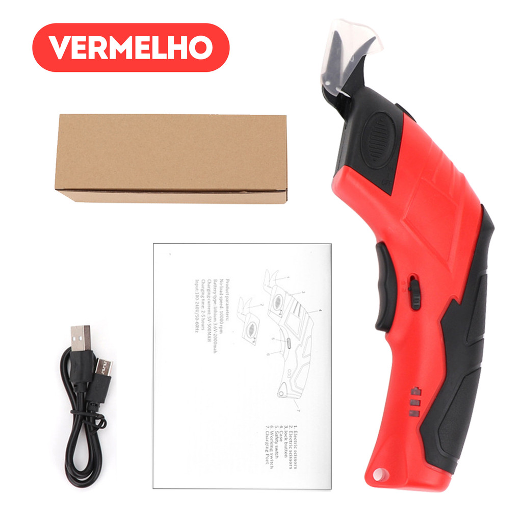 Tesoura Elétrica para Tecido Recarregável Portátil Sem Fio Couro Plástico Papelão