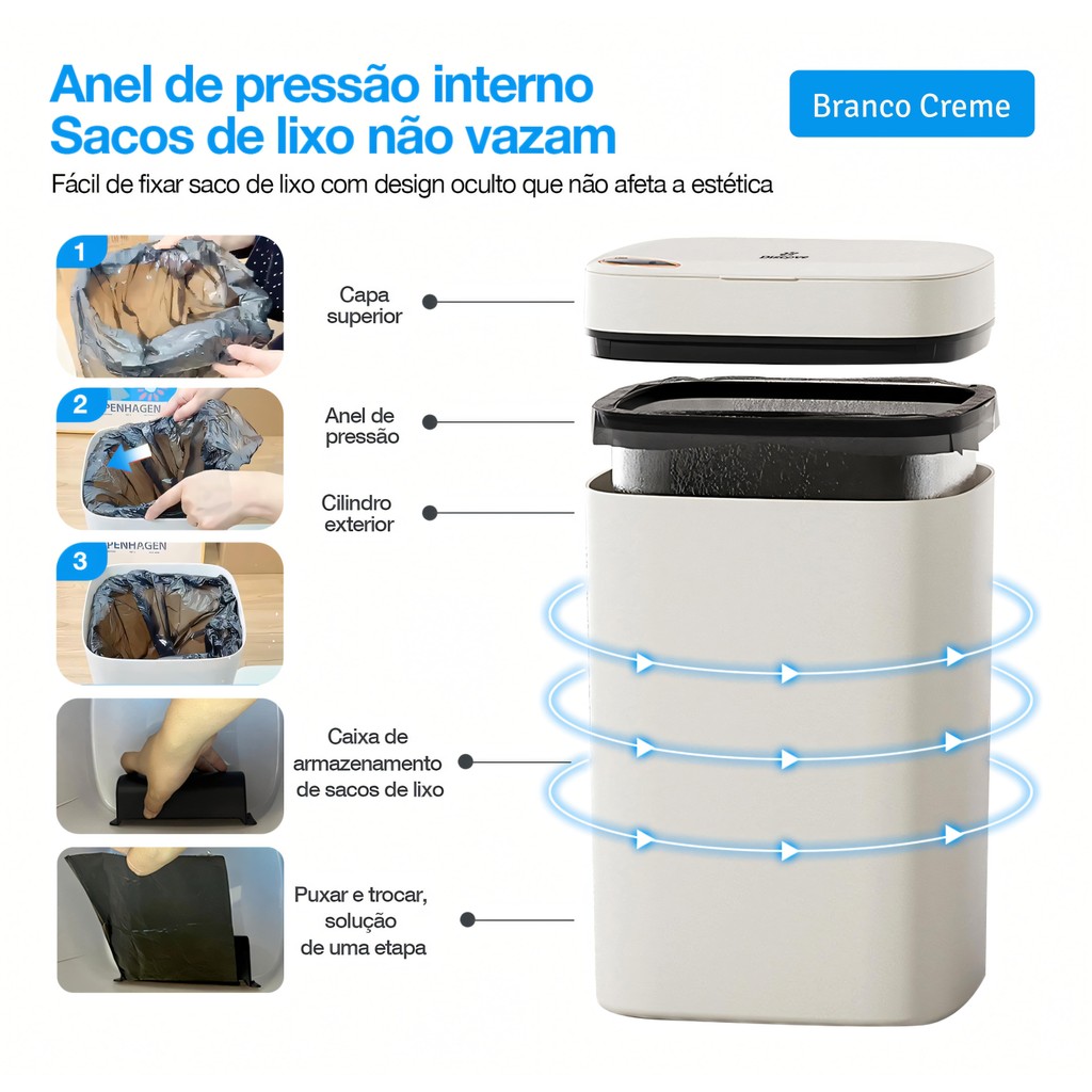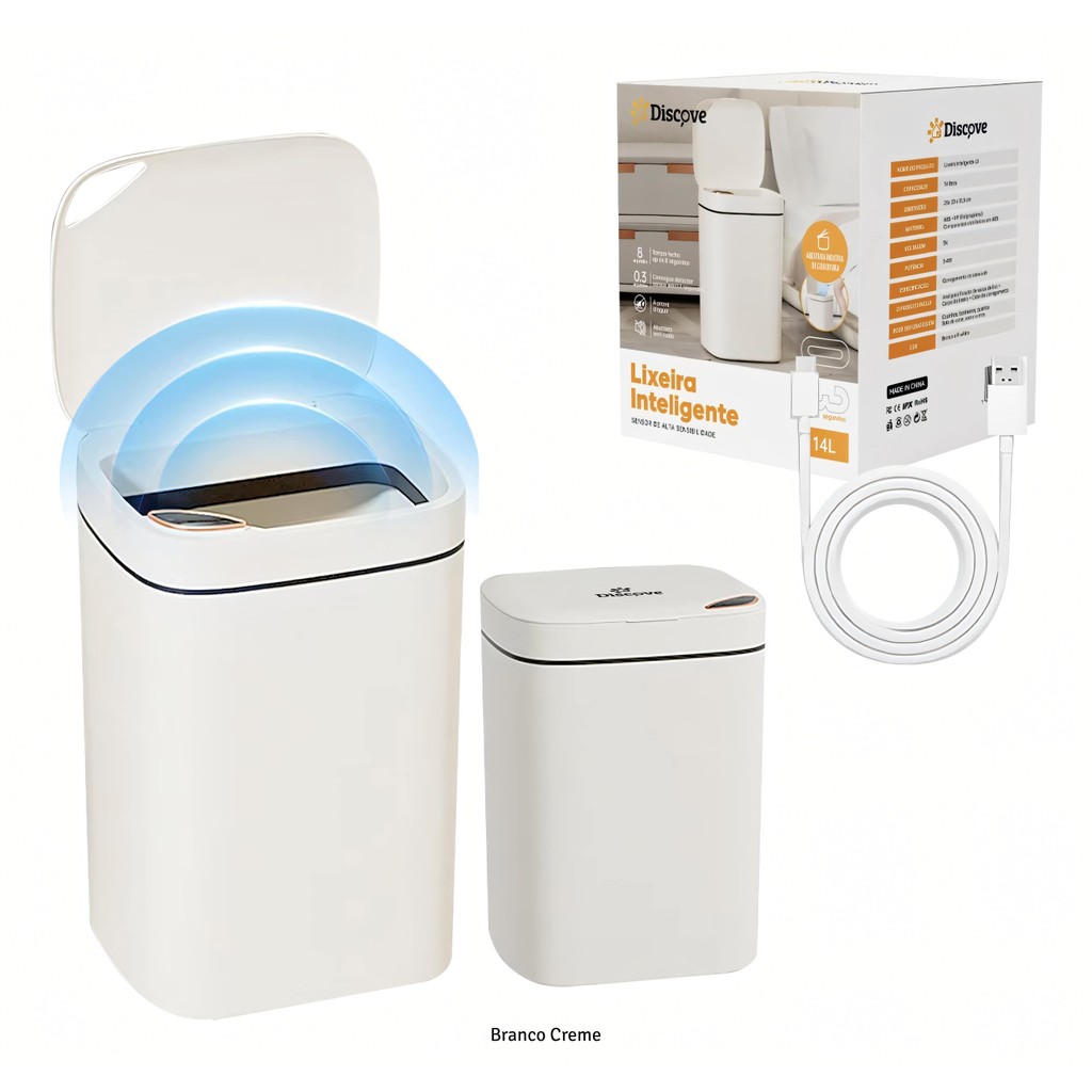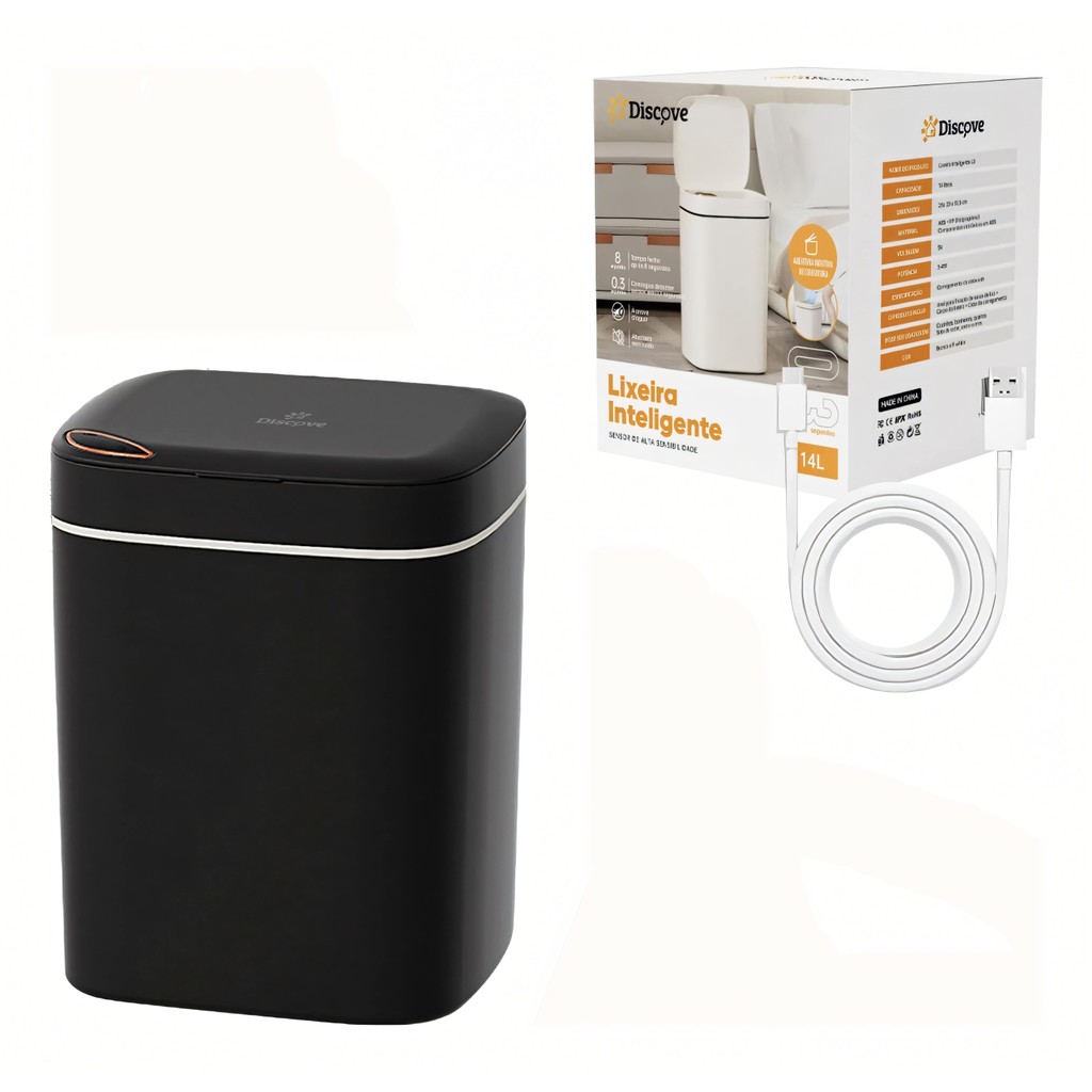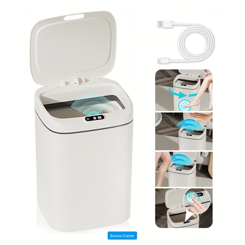 Lixeira Inteligente 12 14 16 Litros USB com Sensor Automático 3 Funções Banheiro Cozinha Escritório