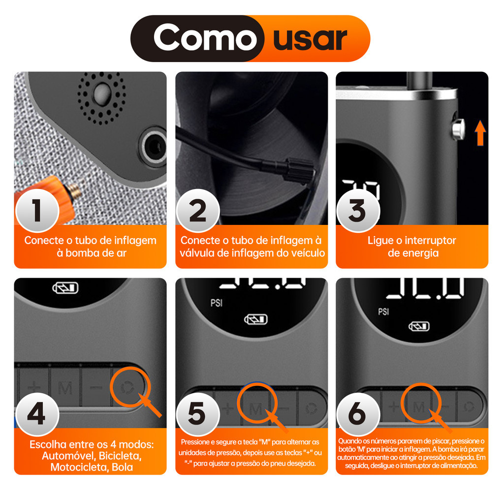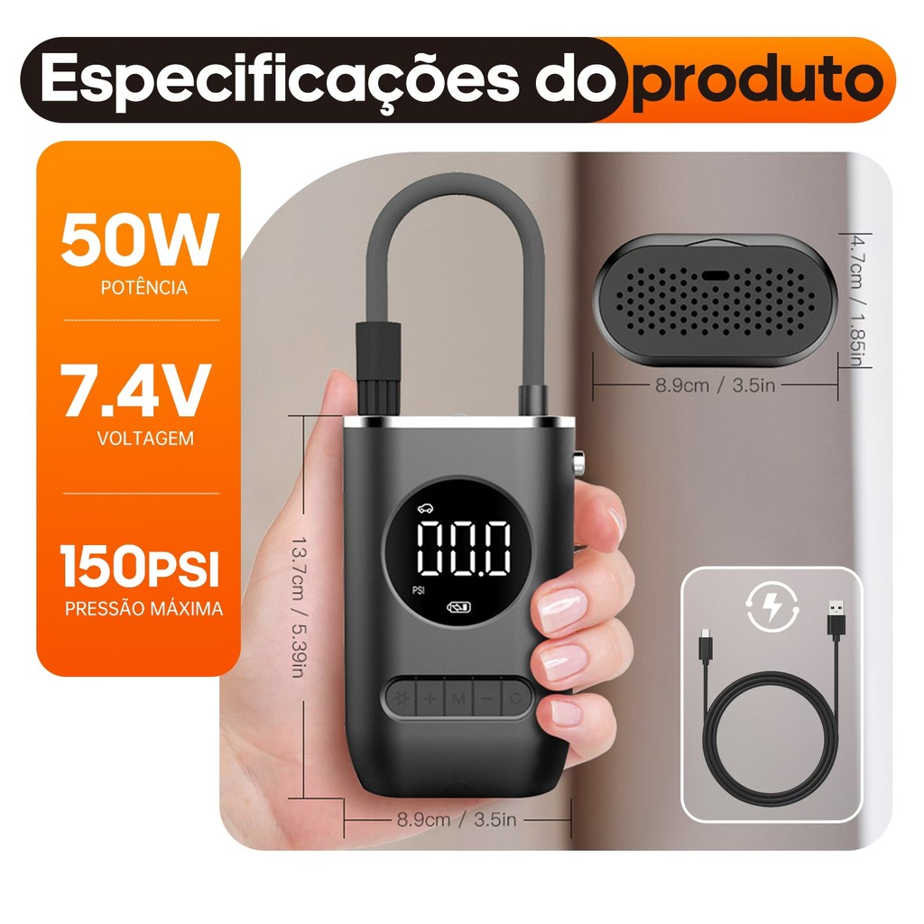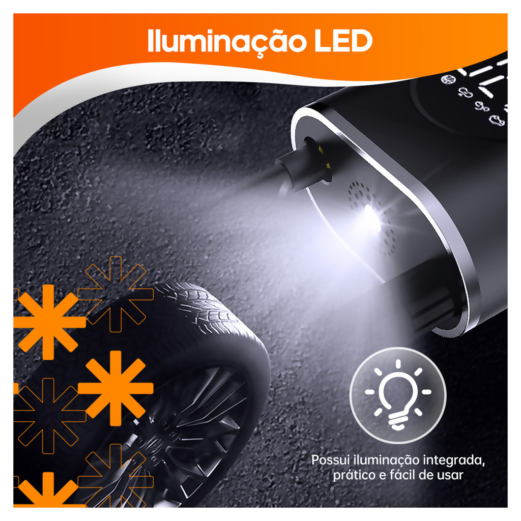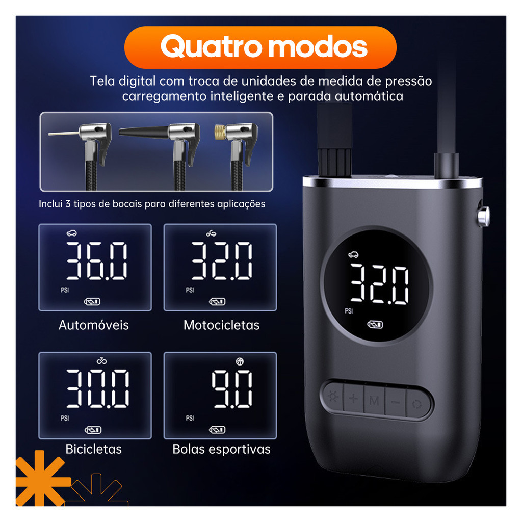 Mini Compressor de Ar Digital Com Lanterna Bomba De Encher Pneu Bola Calibrador Portátil