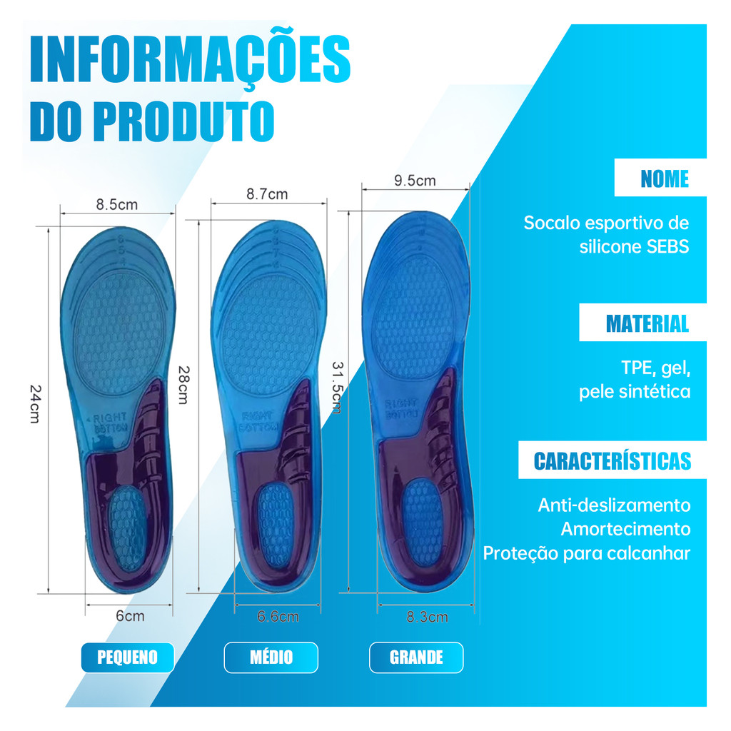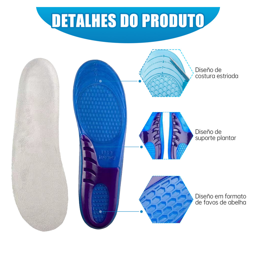 Par de Palmilha de Silicone Ortopédico Gel Pés Sapato Tênis Anti-Impacto Conforto