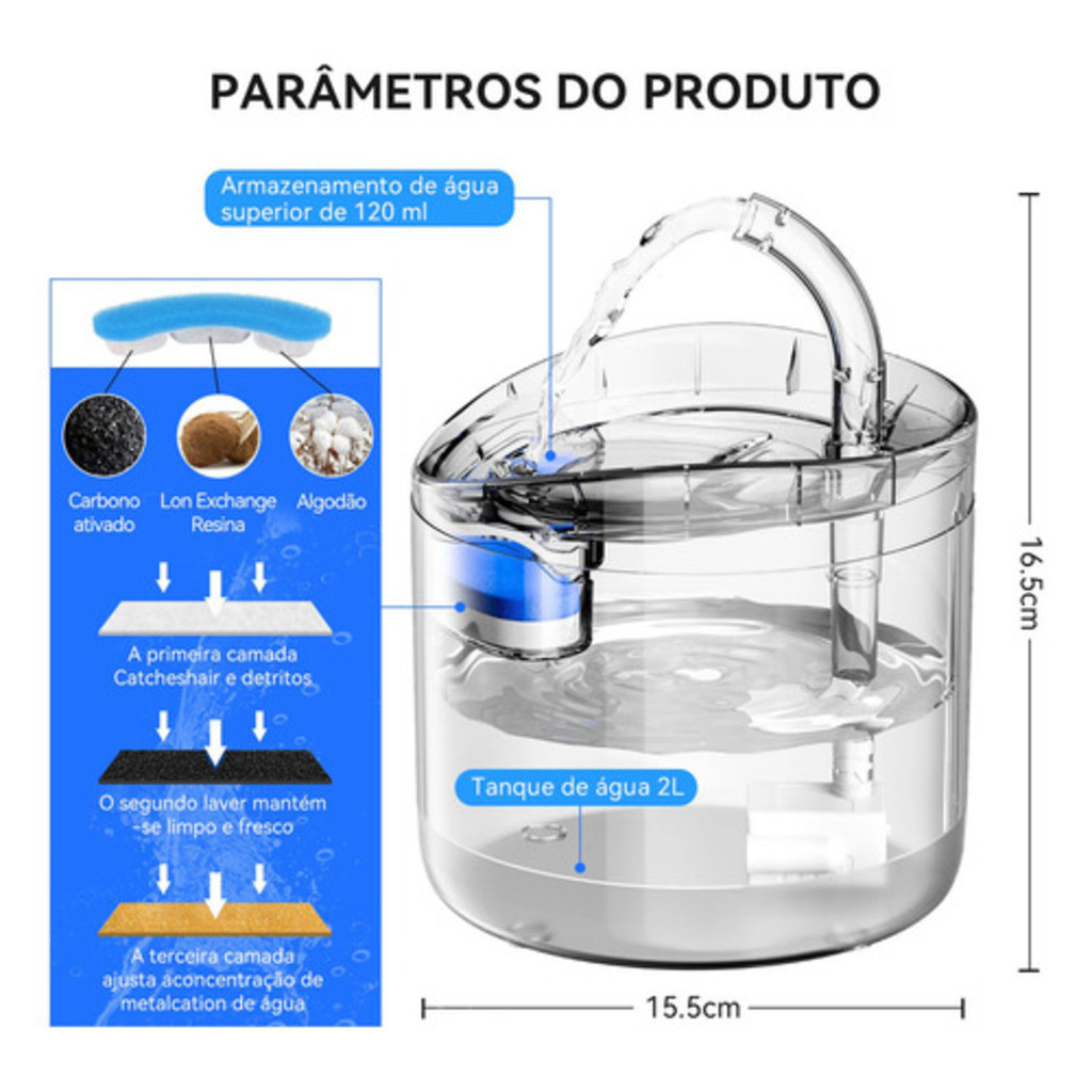 2.0L fonte de água bebedouro para gatos e cães Usb