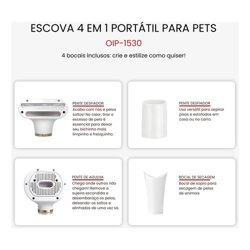 Escova 4em1 Secador Cabelo Pente Cão Gato Seca Portátil Rosa