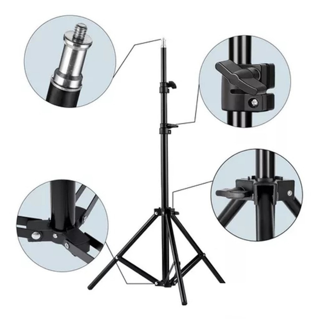 Kit Duplo Softbox 50x70 + Tripé 2m Estúdio Fotografia Iluminação Bivolt Bocal E27 com Tela Difusora