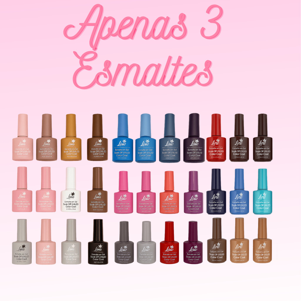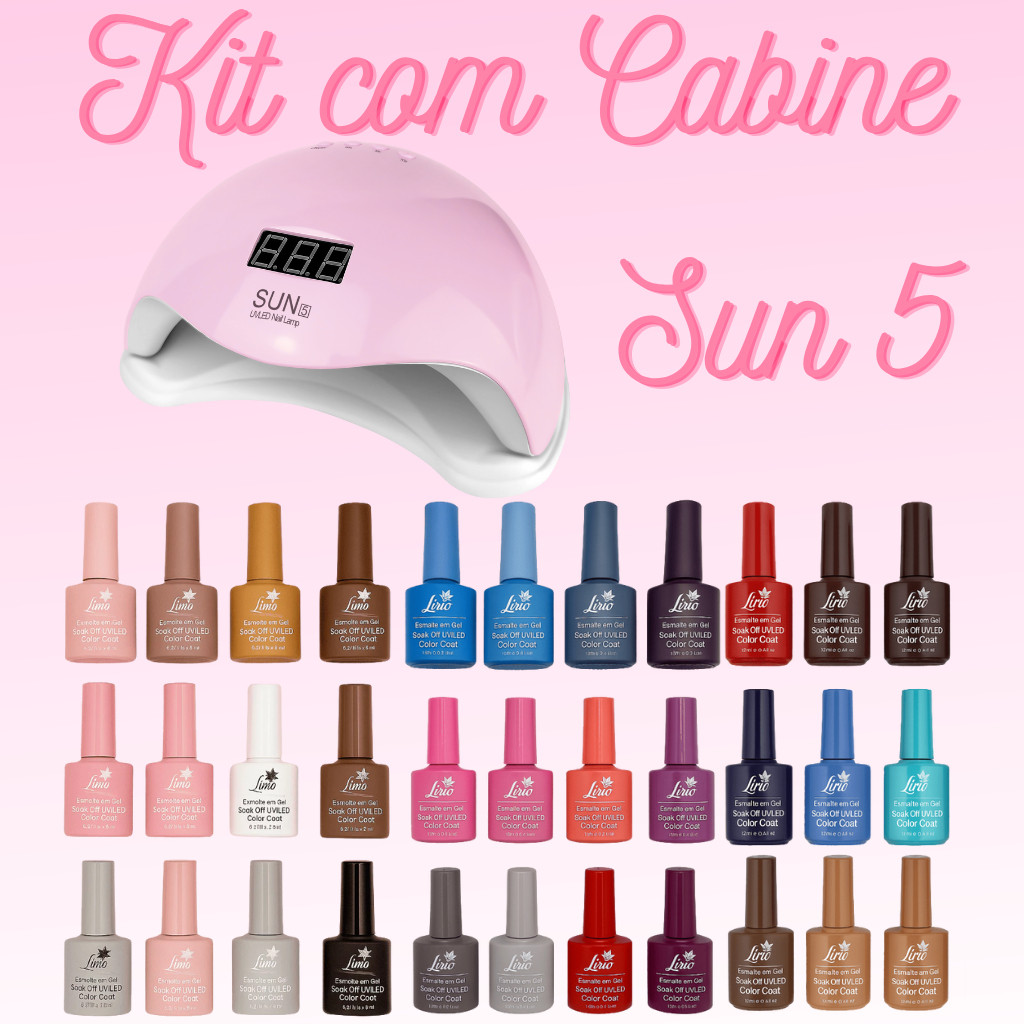 Kit 3 Esmaltes ou 3 Esmaltes + Cabine Sun 5 ou Sun Mini Esmalte Gel Seca UV Iniciante Profissional
