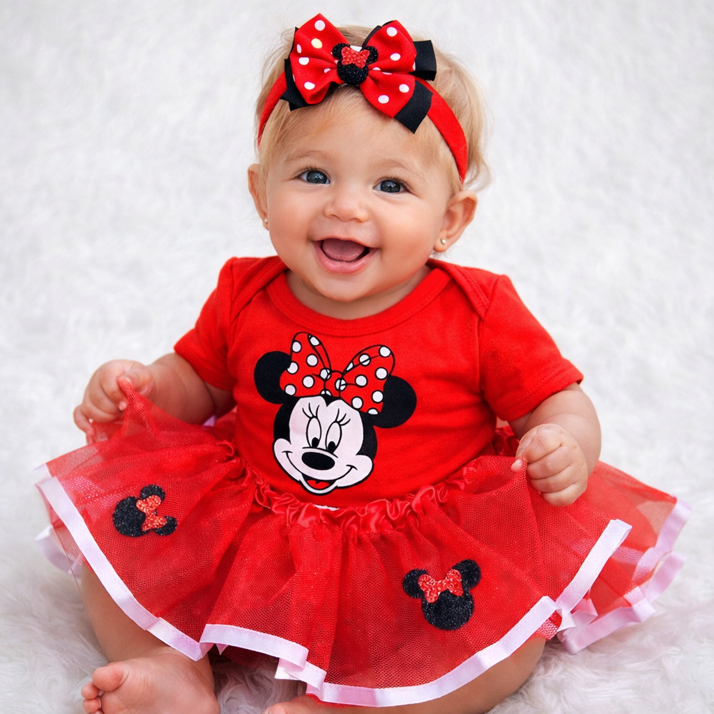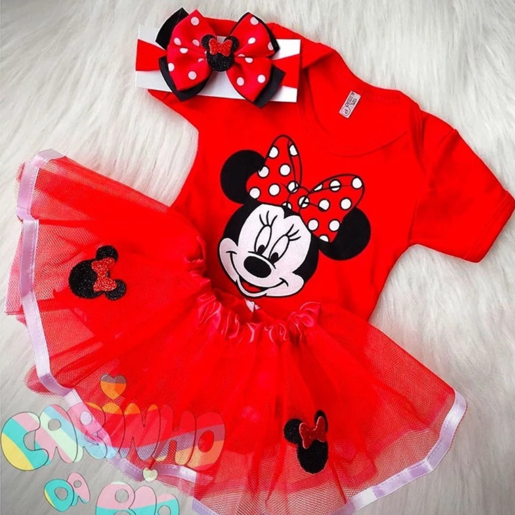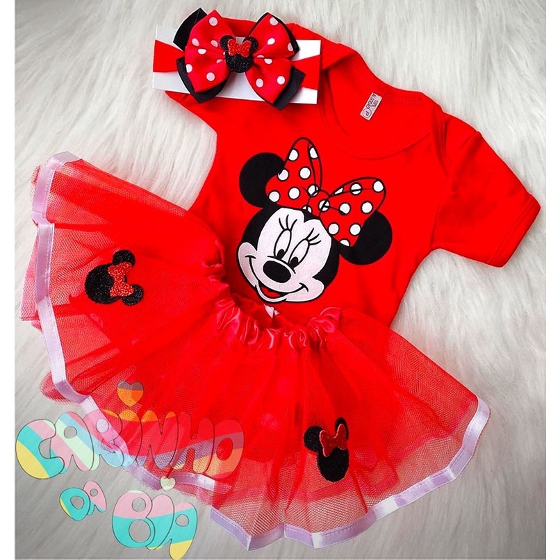 Kit Completo Body Bebê Minnie Mesversário Bebê Menina - Minnie Vermelha