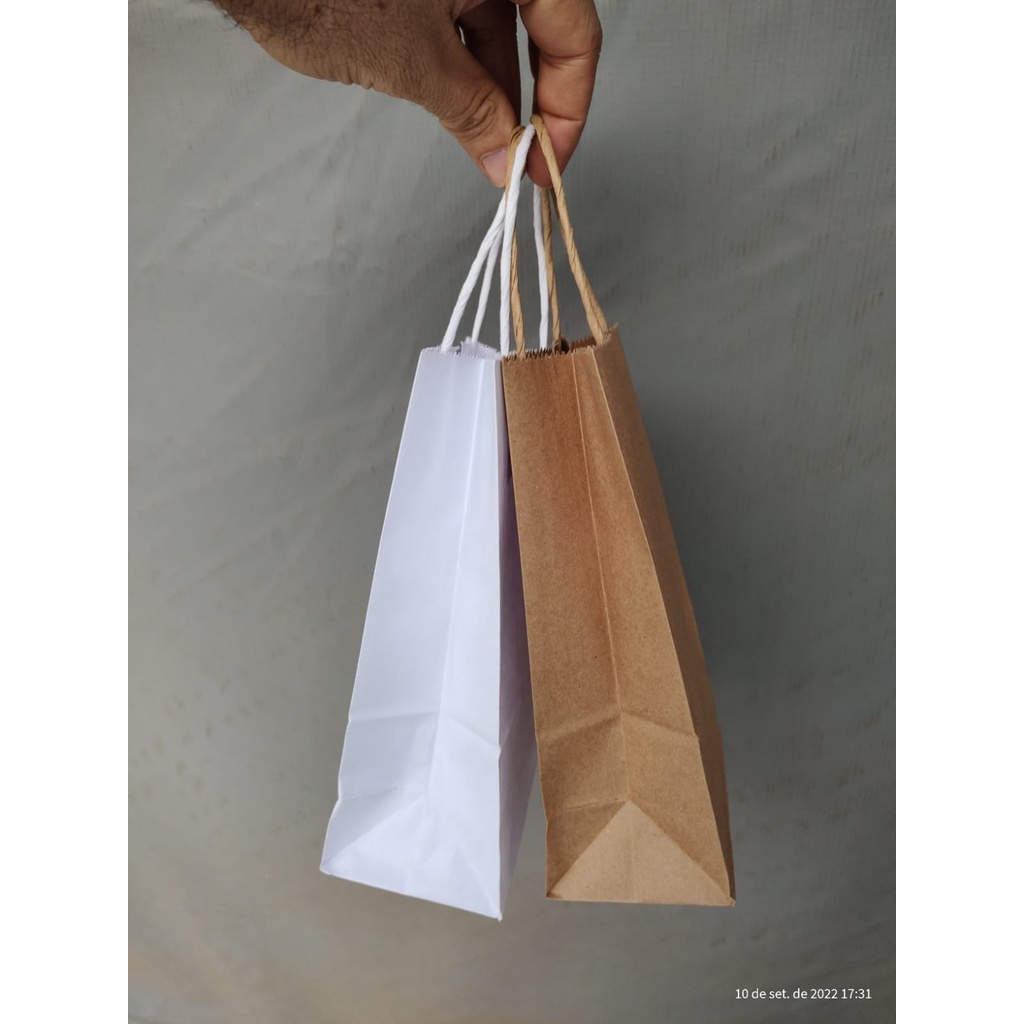 Sacola Papel Kraft Pequena com Alça - 20 unidades para Cosméticos Cookies Doces Laços Lembrancinha