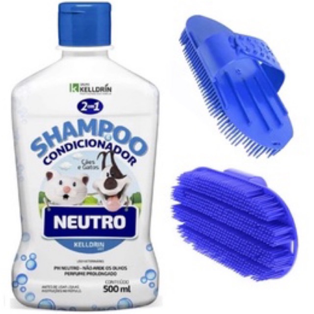 Shampoo e Condicionador Neutro Kelldrin Para Cães e Gatos 500ml + escova regulável