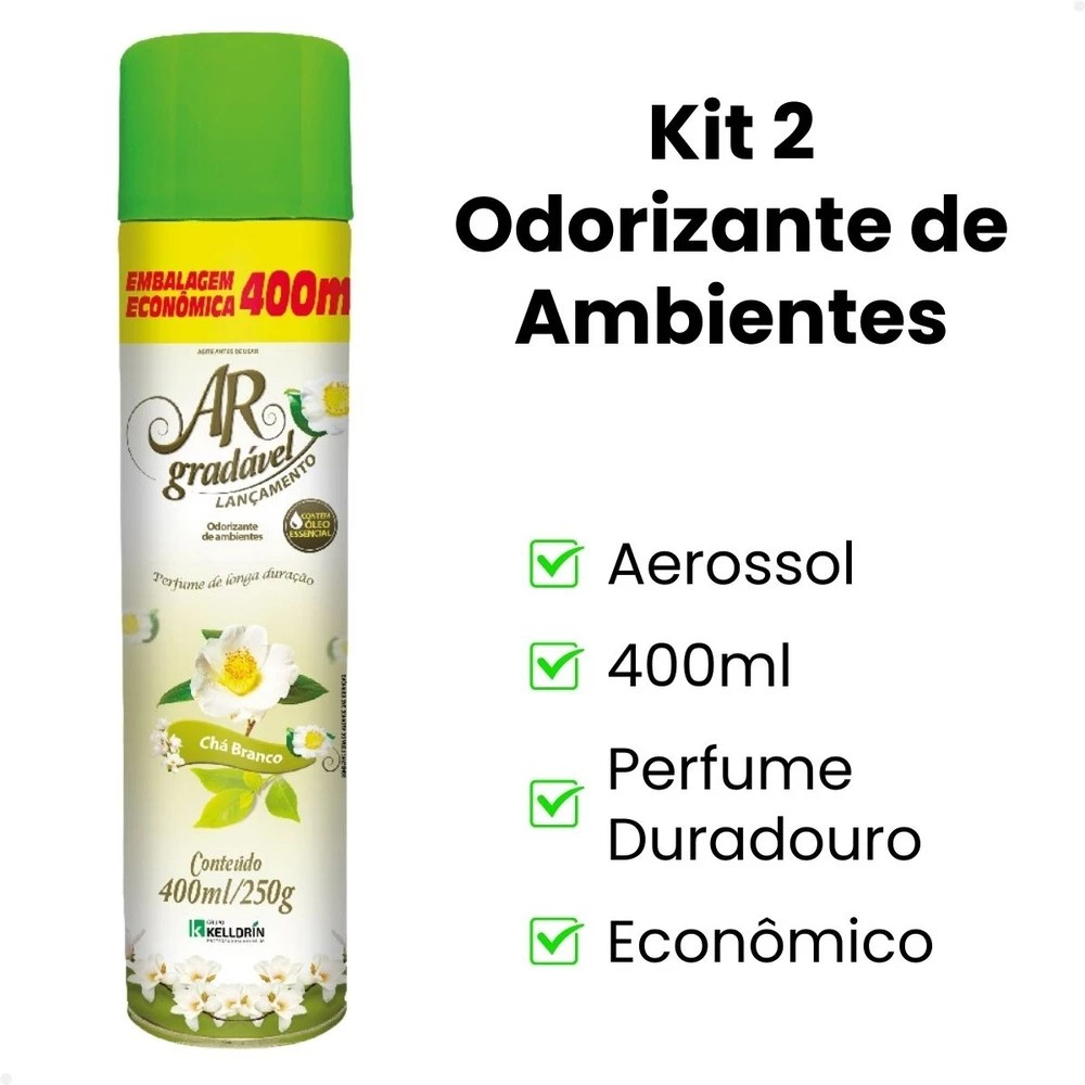 Kit C/2 Unidades Bom Ar Gradável Kelldrin Aerossol Chá Branco - 400ml Cada