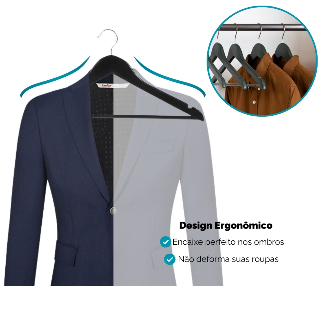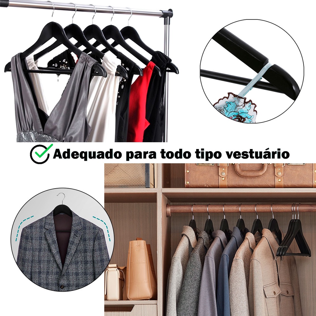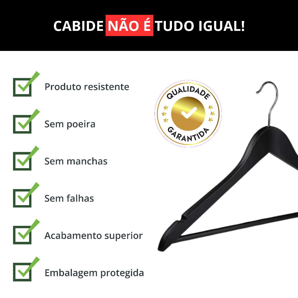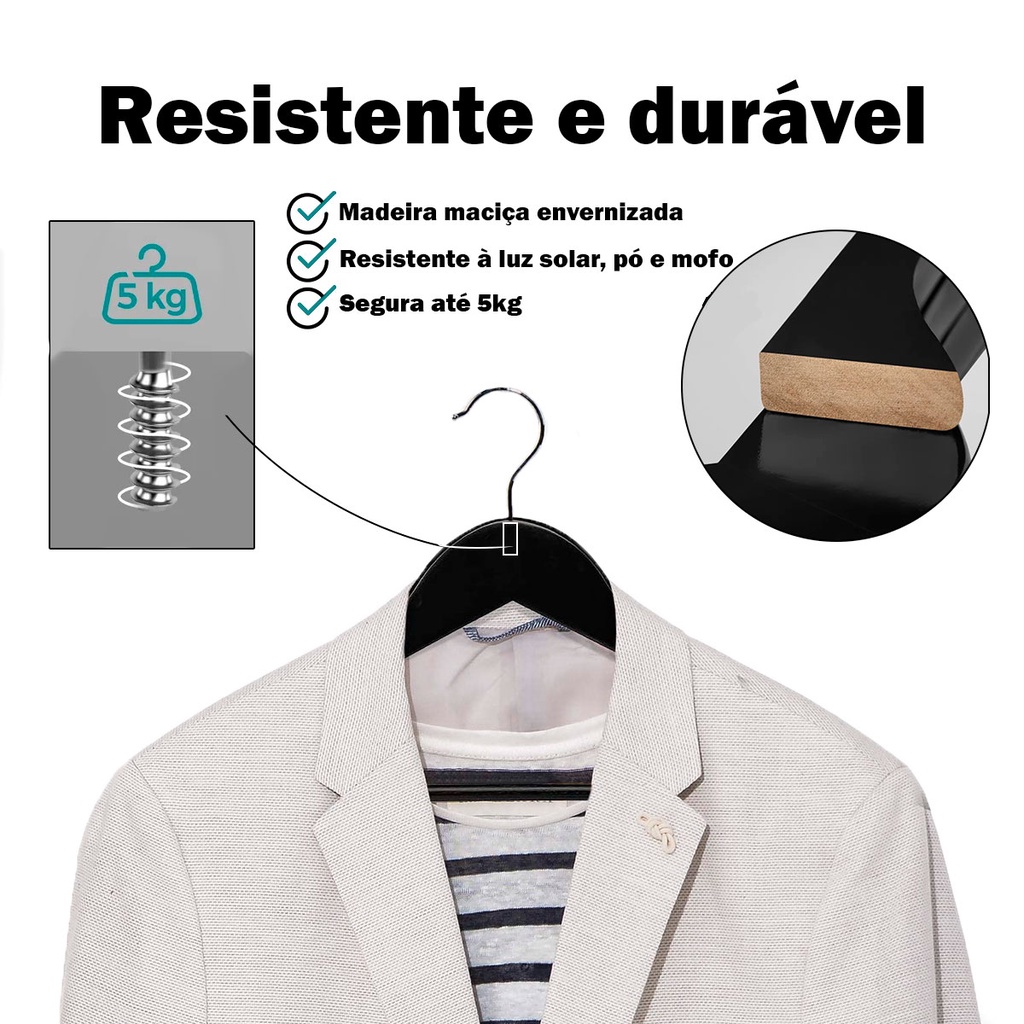 Kit 200 Cabides de Madeira no Atacado Maciça Preta Envernizada Resistente e de Luxo de Roupa Adulto