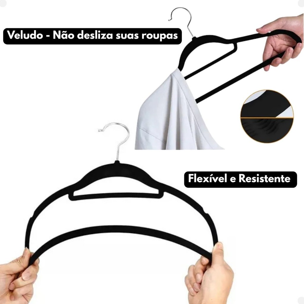 Cabide de Veludo Preto 50 Unidades Slim Adulto Antideslizante Atacado loja